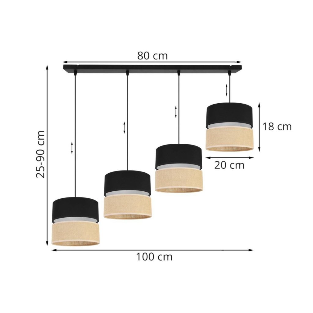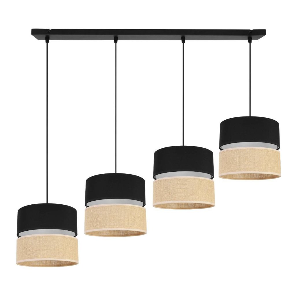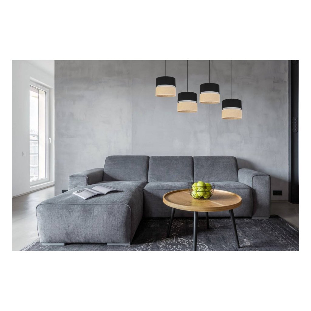 Závěsné svítidlo Juta, 4x jutové/černé textilní stínítko, b