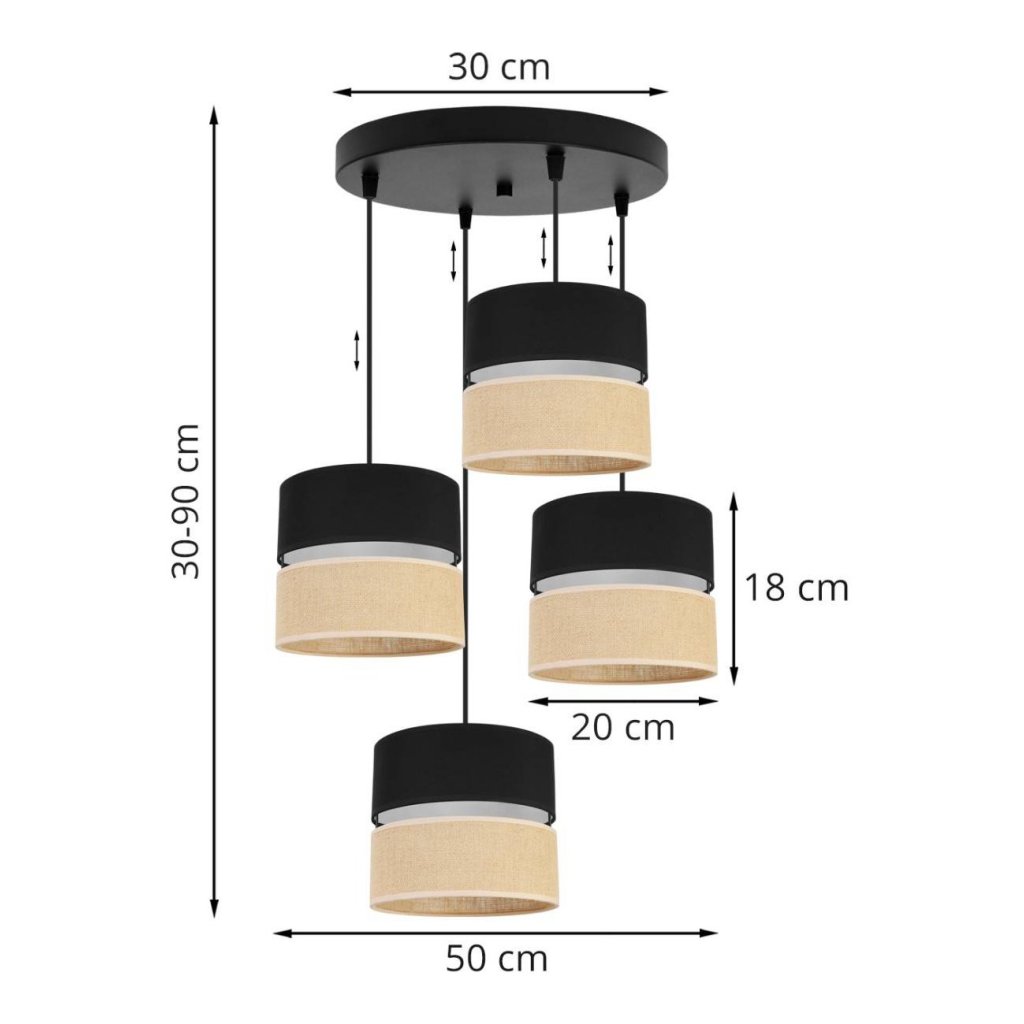 Závěsné svítidlo Juta, 4x jutové/černé textilní stínítko, o, b