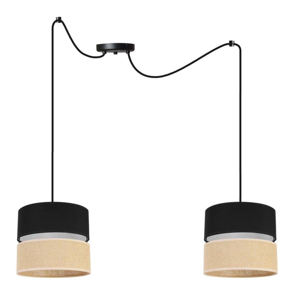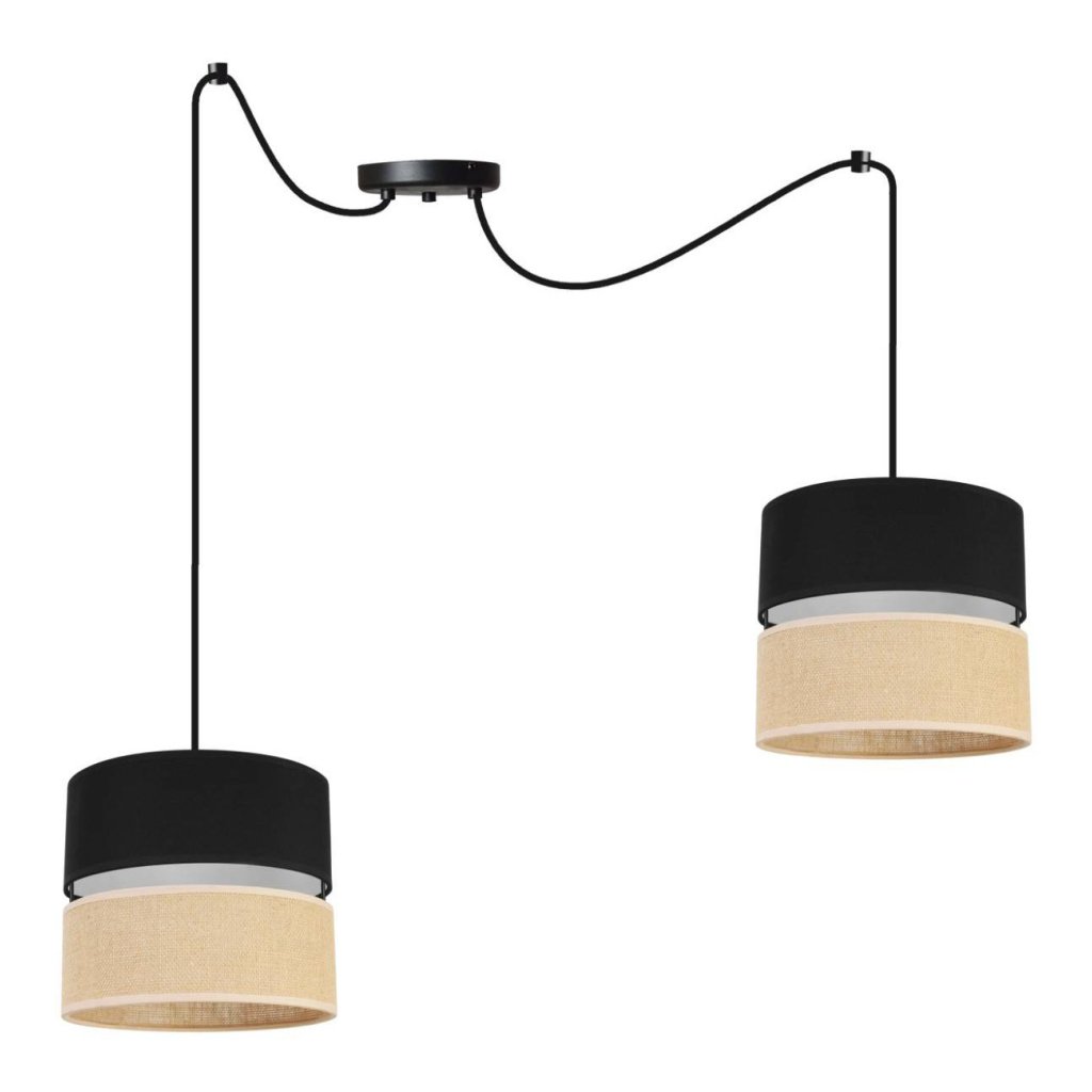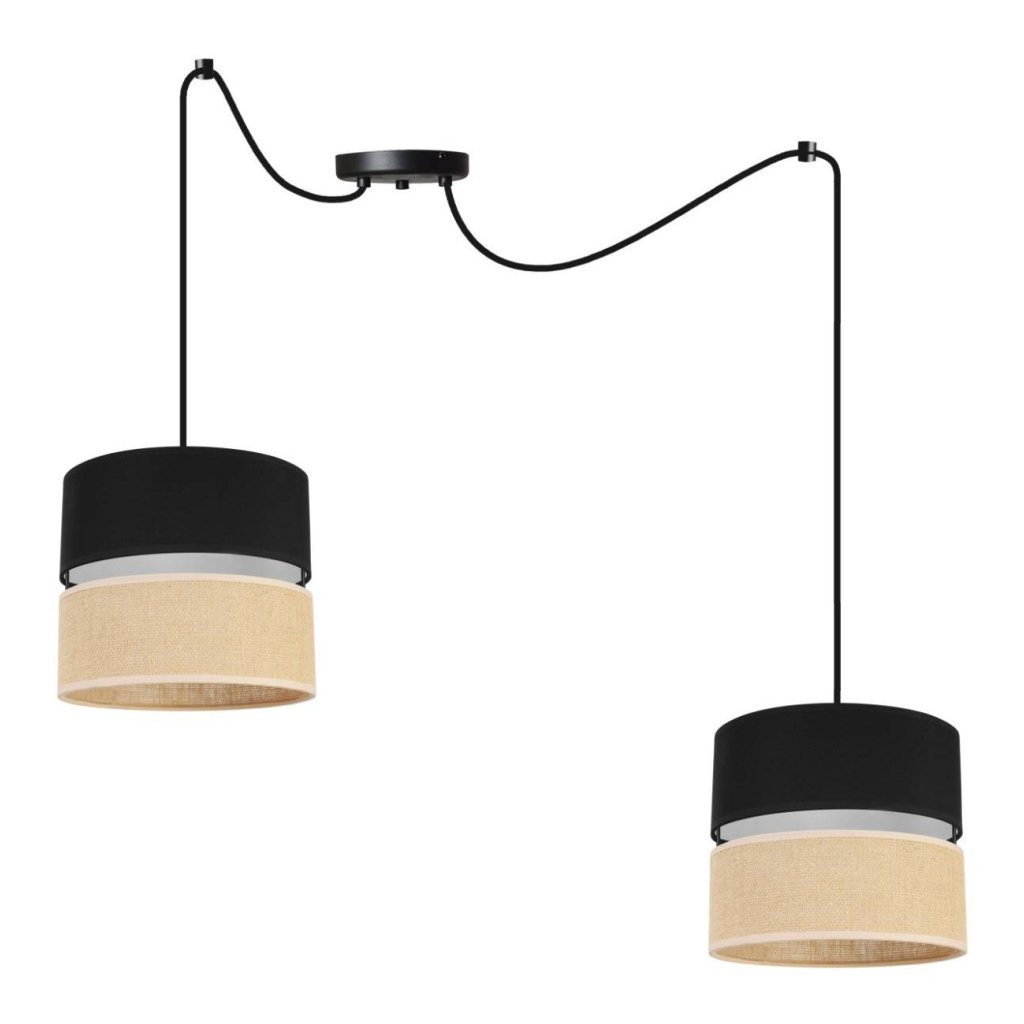 Závěsné svítidlo Juta Spider, 2x jutové/černé textilní stínítko, b
