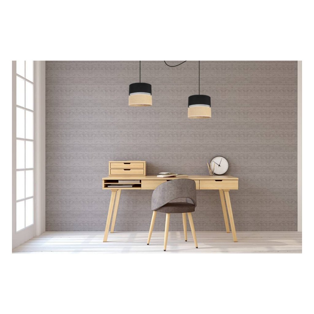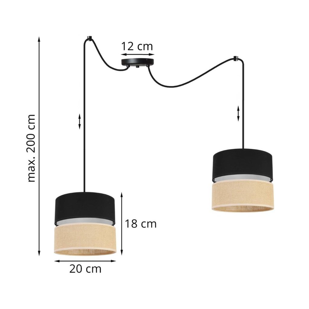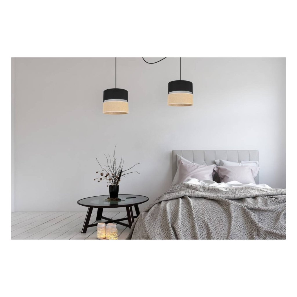 Závěsné svítidlo Juta Spider, 2x jutové/černé textilní stínítko, b