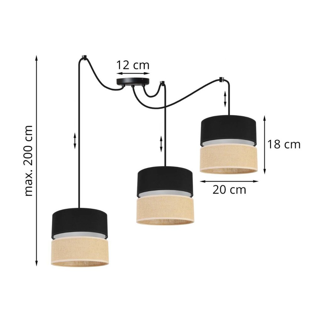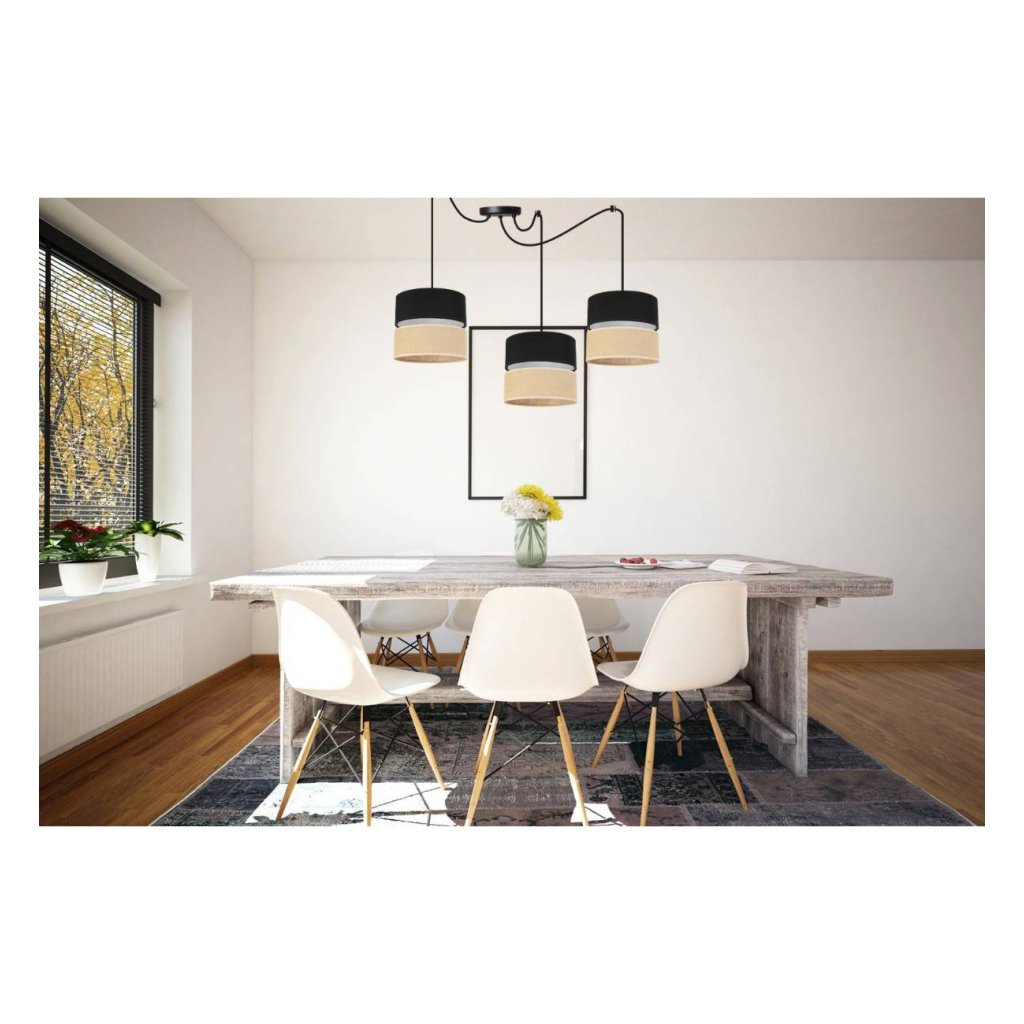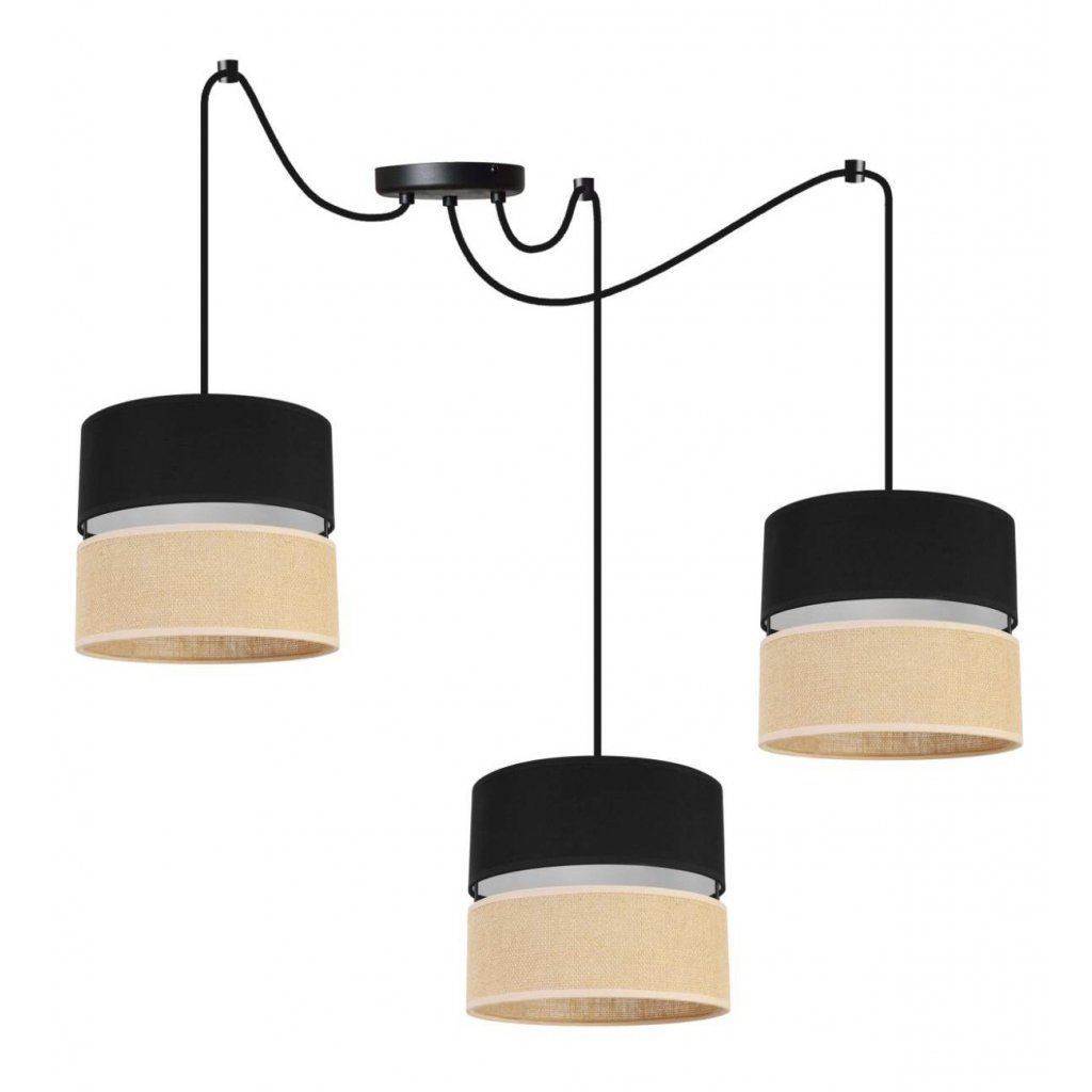 Závěsné svítidlo Juta Spider, 3x jutové/černé textilní stínítko, b