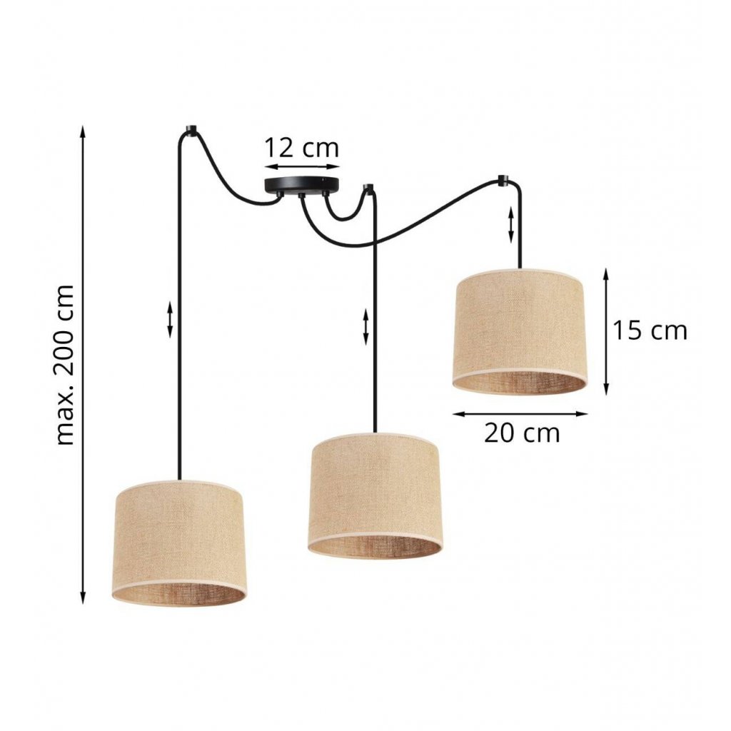 Závěsné svítidlo Juta Spider, 3x jutové stínítko, (výběr ze 2 barev konstrukce), (fi 20cm)