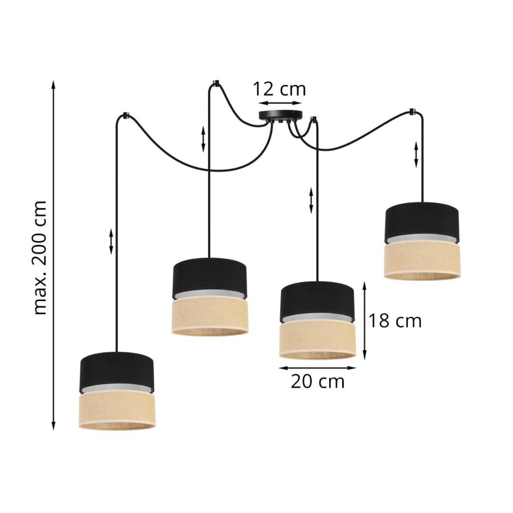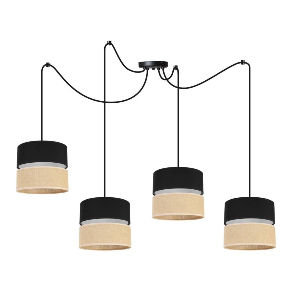 Závěsné svítidlo Juta Spider, 4x jutové/černé textilní stínítko, b