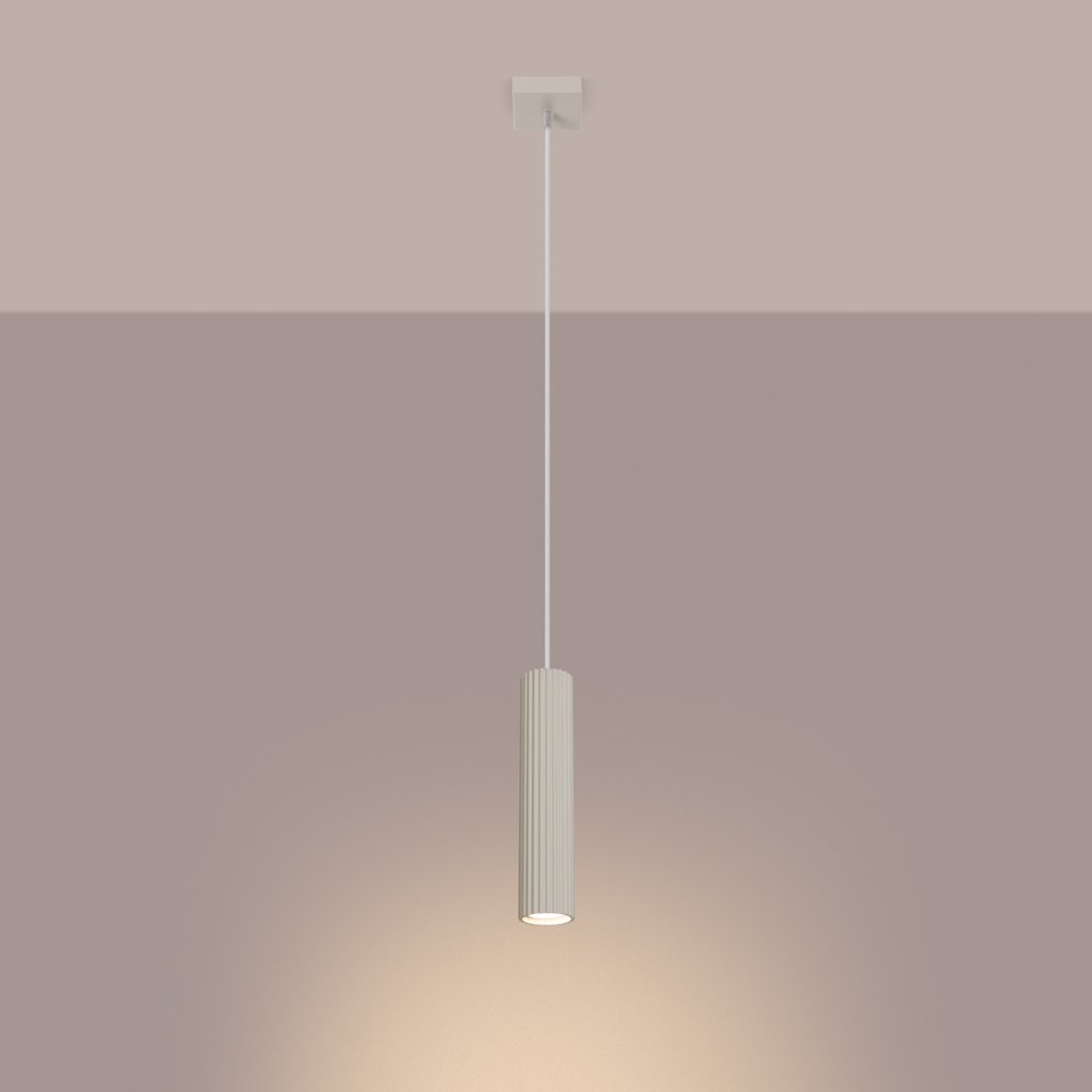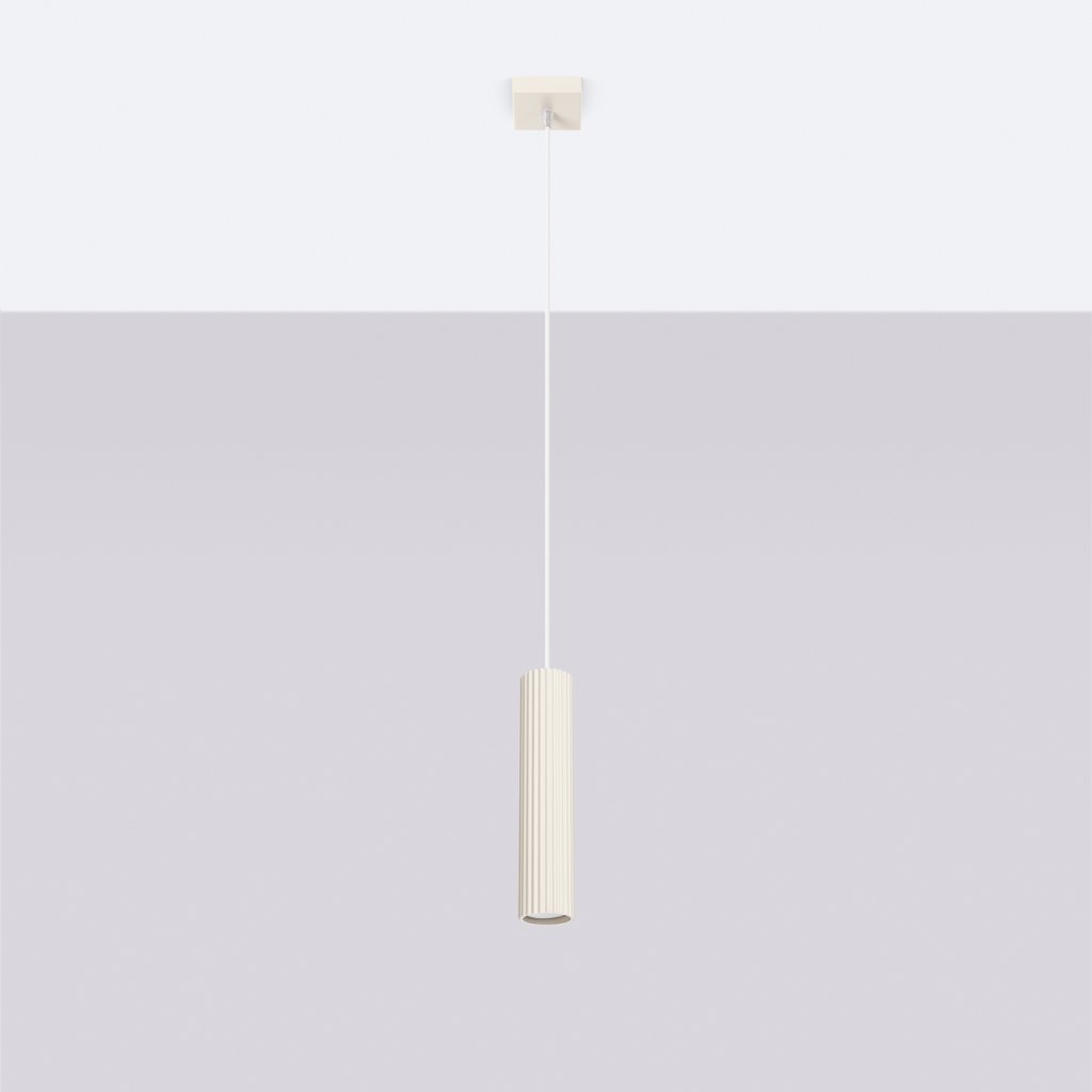 Závěsné svítidlo KARBON s jedním béžovým kovovým stínidlem je ztělesněním elegance a minimalismu. Díky svému úzkému tvaru a decentnímu stínidlu působí svítidlo lehce a vzdušně a vnáší do prostoru pocit harmonie a útulnosti. Žebrovaný povrch dodává svítidlu KARBON charakteristický moderní vzhled.