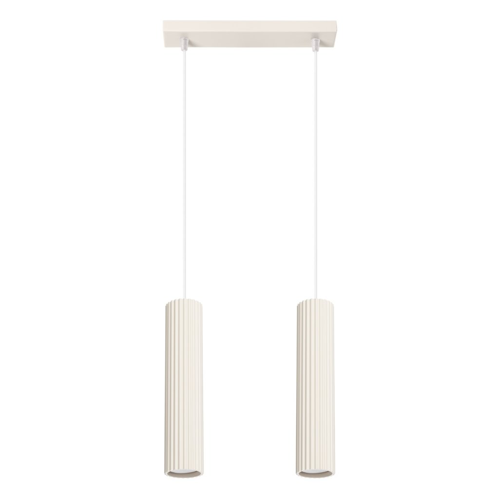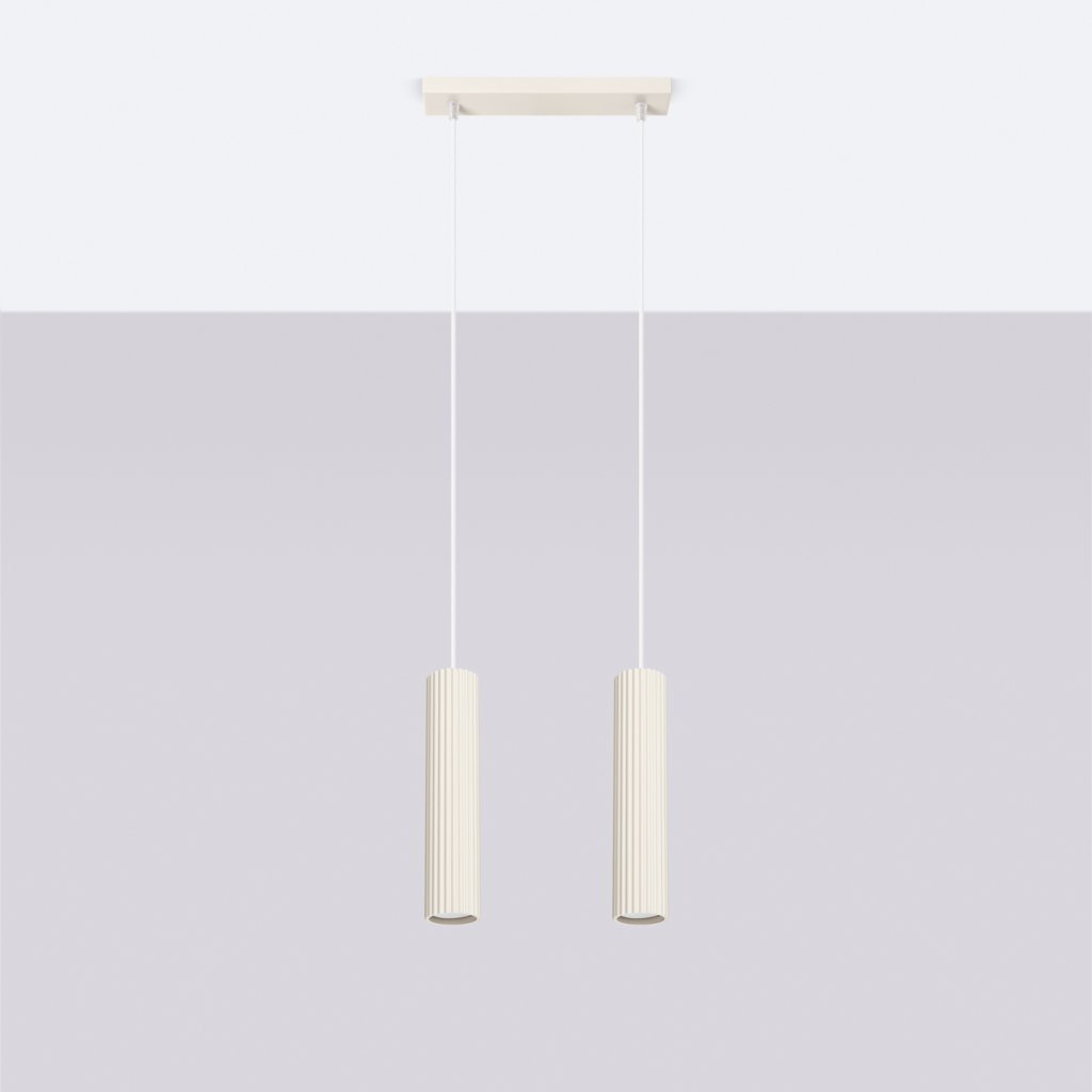 Závěsné svítidlo KARBON s dvěma béžovými kovovými stínidly vyniká elegantním designem a jemnou barevnou harmonií, která působí příjemně a moderně zároveň. Charakteristický žebrovaný povrch dodává svítidlu jedinečný vzhled, díky němuž se stane výrazným doplňkem každého interiéru.