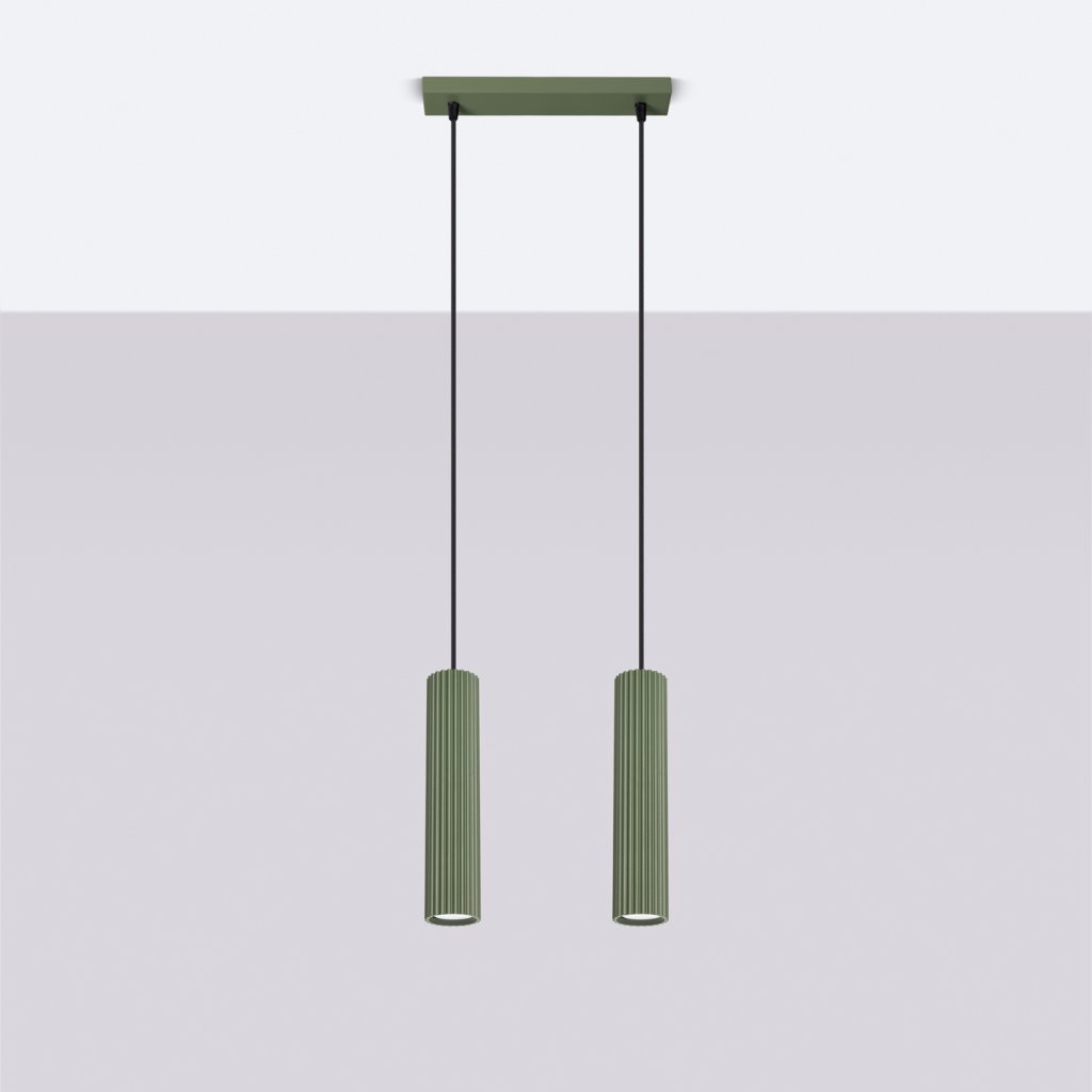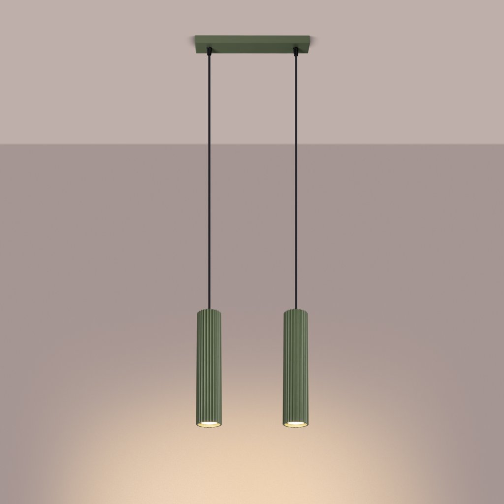 Závěsné svítidlo KARBON s dvěma olivově zelenými kovovými stínidly je dokonalou kombinací moderního designu a praktické funkčnosti. Charakteristický žebrovaný povrch dodává svítidlu jedinečný vzhled a působí jako elegantní prvek, který vynikne v každém interiéru.