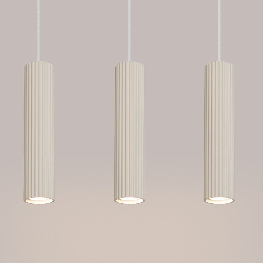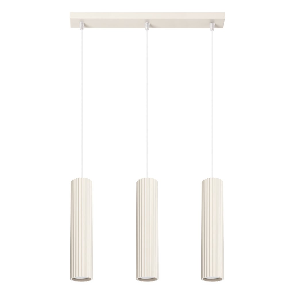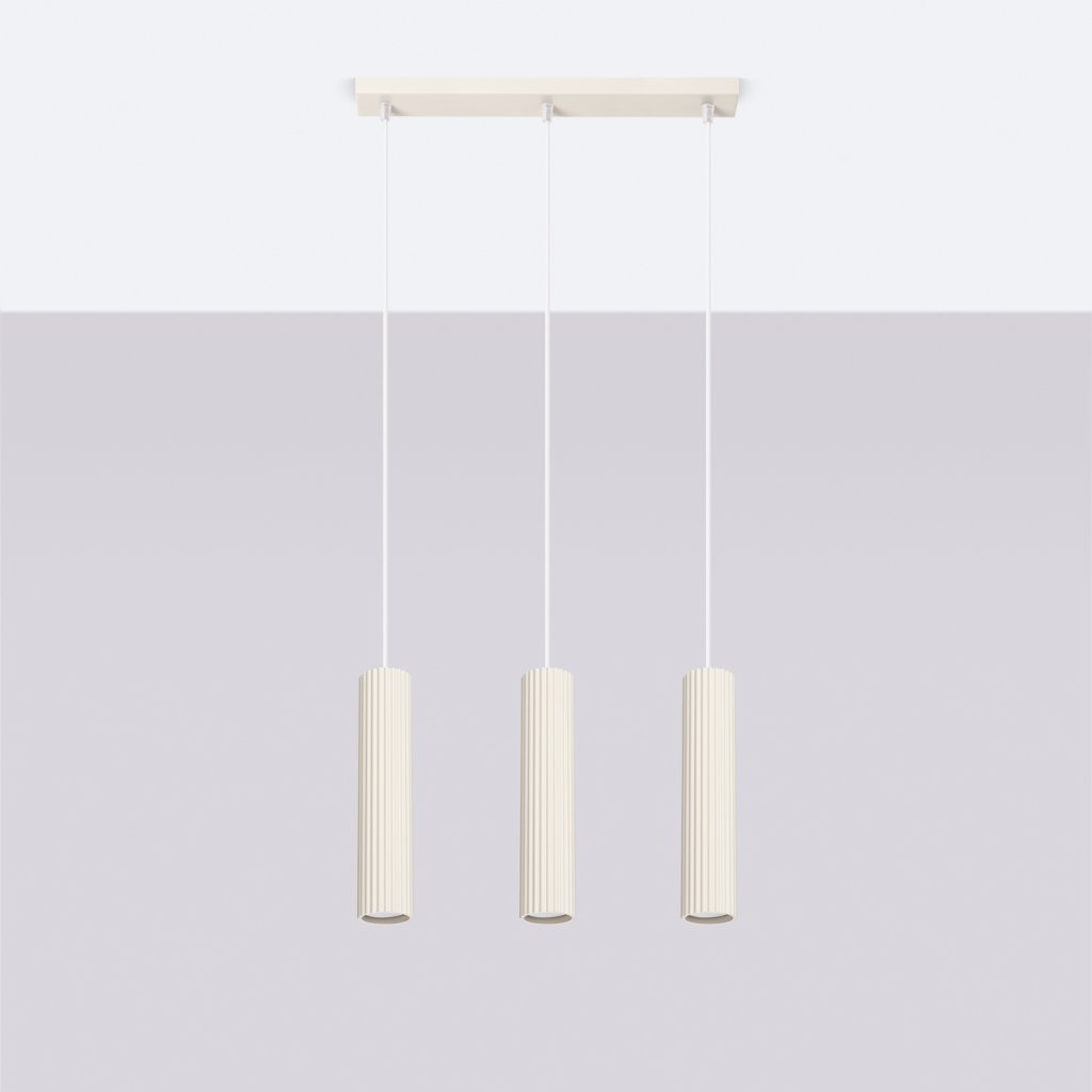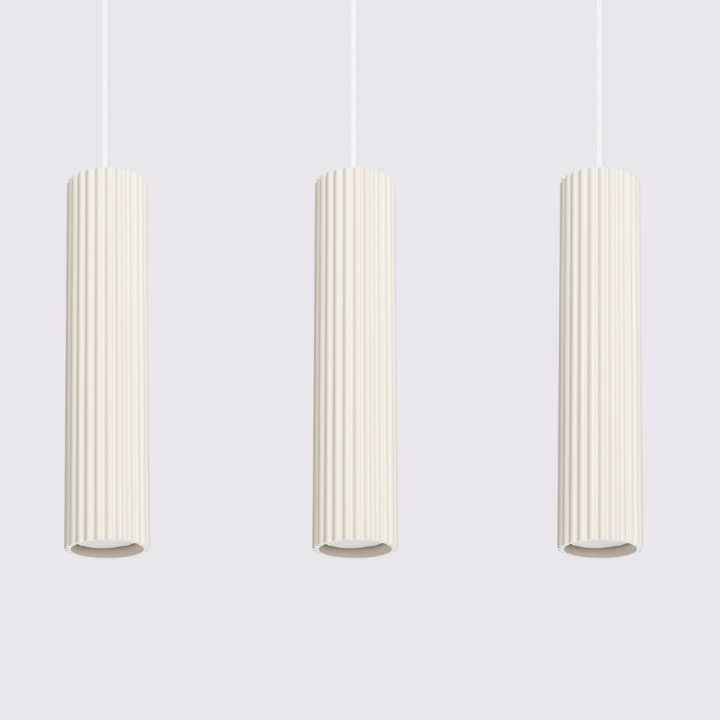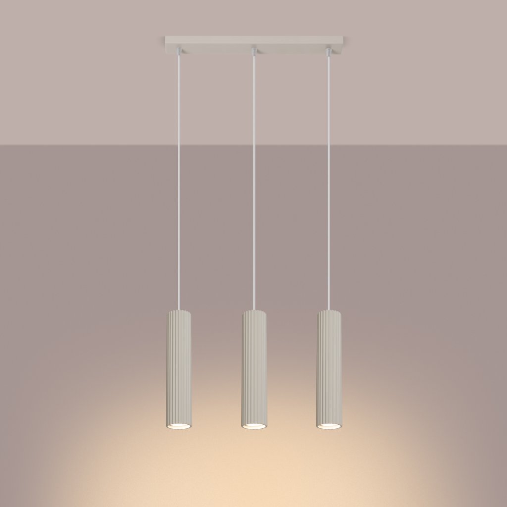 Závěsné svítidlo KARBON s třemi béžovými kovovými stínidly je moderní řešení osvětlení, které spojuje eleganci s funkčností. Jemné linie a žebrovaná struktura dodávají svítidlu stylový vzhled, který vynikne v každém typu interiéru, od minimalistických až po klasické prostory.