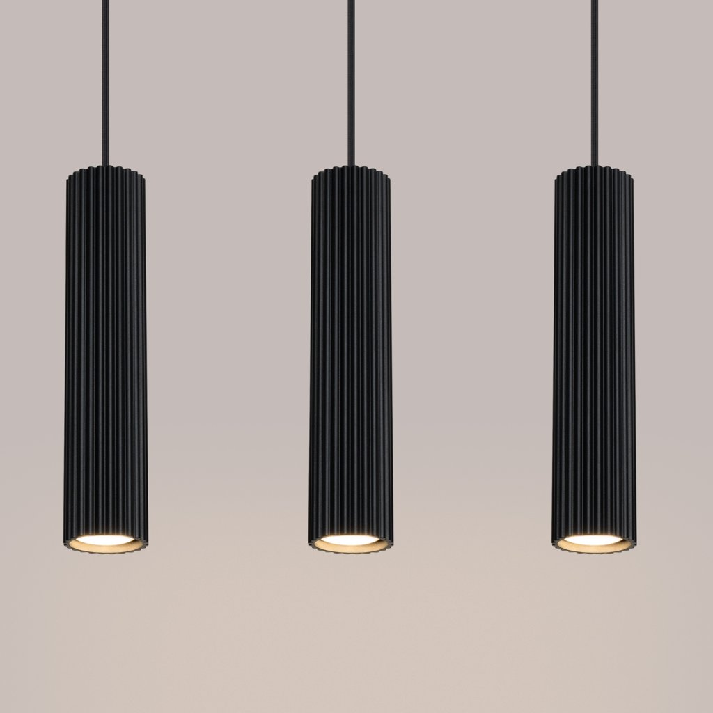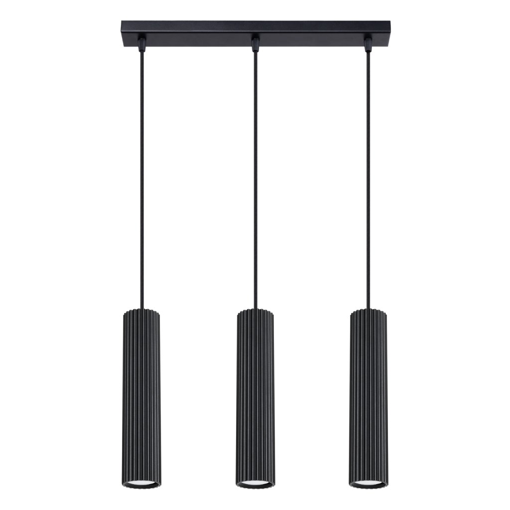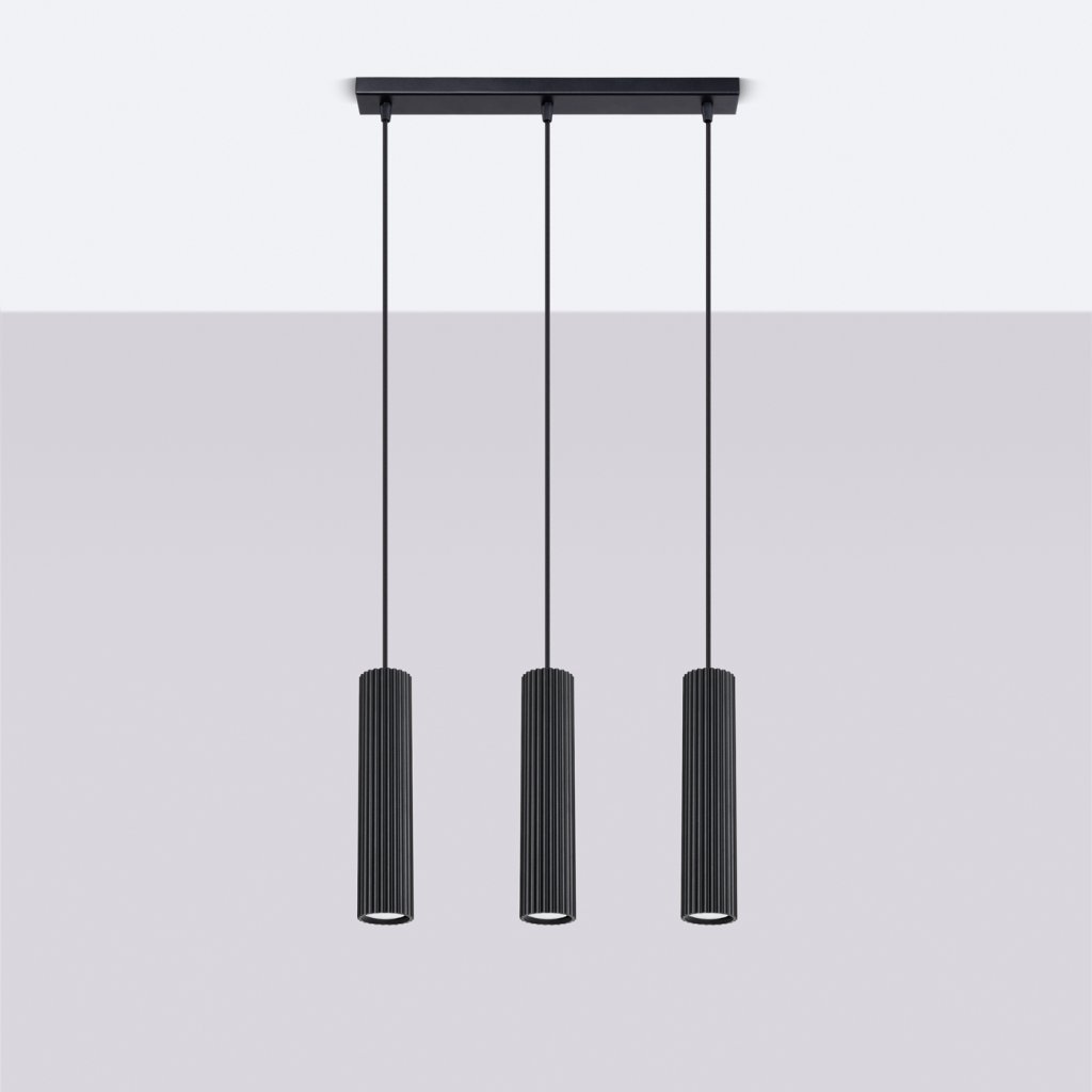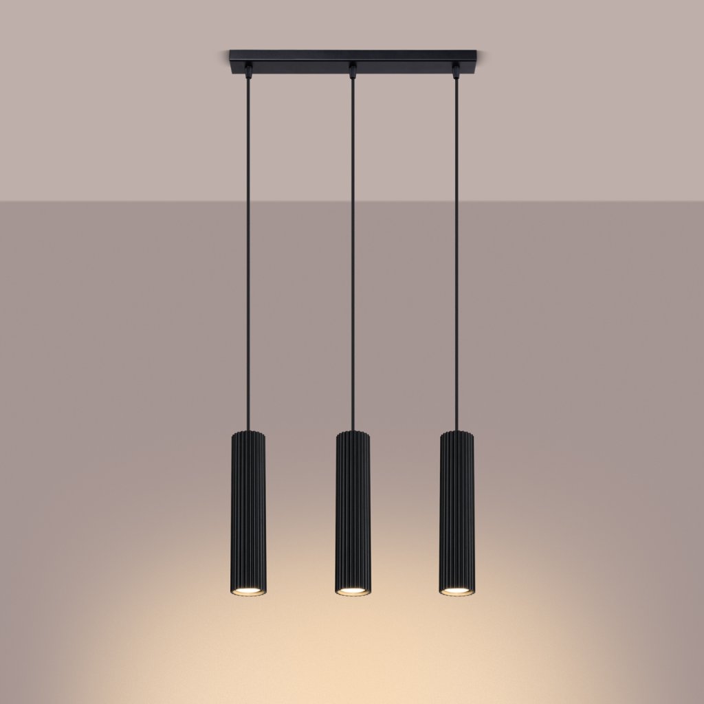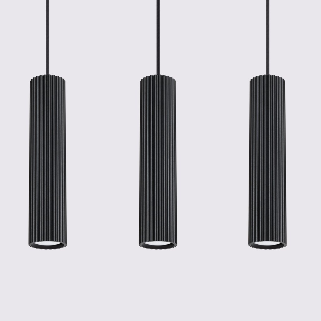 Závěsné svítidlo KARBON s třemi černými kovovými stínidly je elegantním řešením pro moderní interiéry, které kombinuje styl, funkčnost a kvalitu. Minimalistický design s jemnou žebrovanou strukturou dodává svítidlu jedinečný charakter, který vynikne v obývacím pokoji, jídelně nebo nad kuchyňským ostrůvkem.