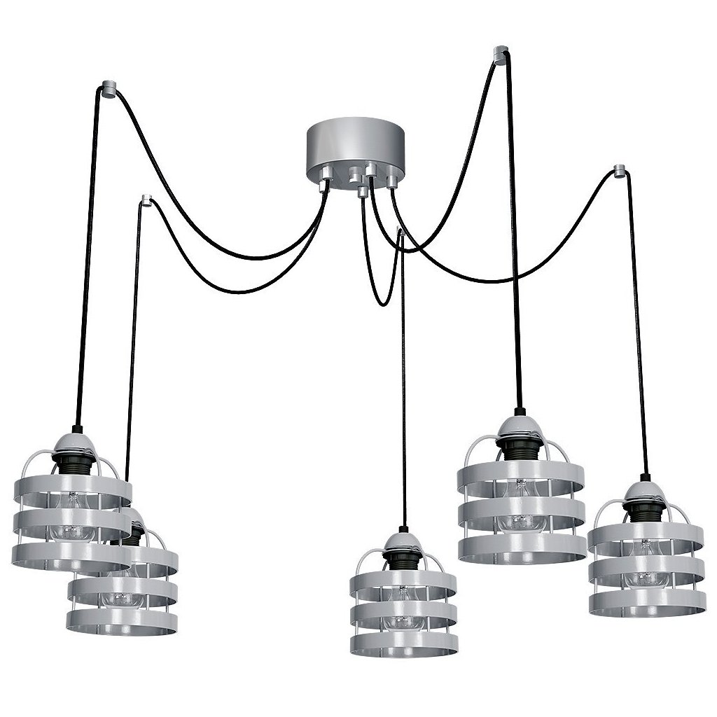 Závěsné svítidlo Lars, 5x šedé kovové stínítko, gr