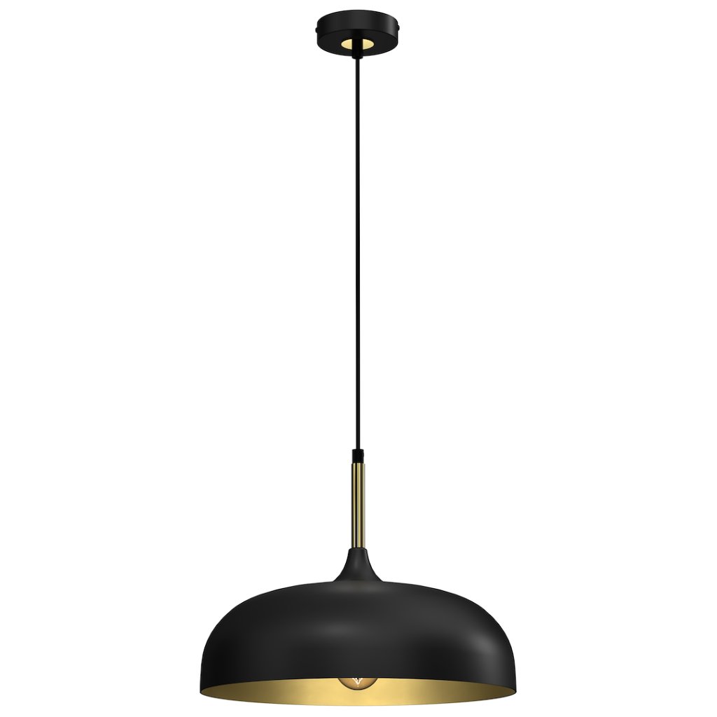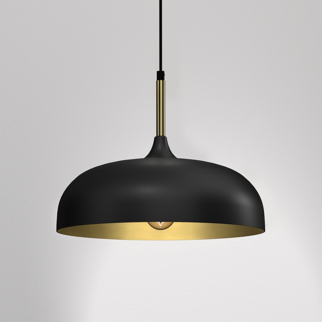 Stylové závěsné svítidlo s černým kovovým stínítkem a zlatým vnitřním povrchem je výjimečnou kombinací minimalistického designu a elegance . Jeho nadčasová forma bez zbytečných ozdob je ideální pro moderní, klasické i industriálně laděné interiéry .