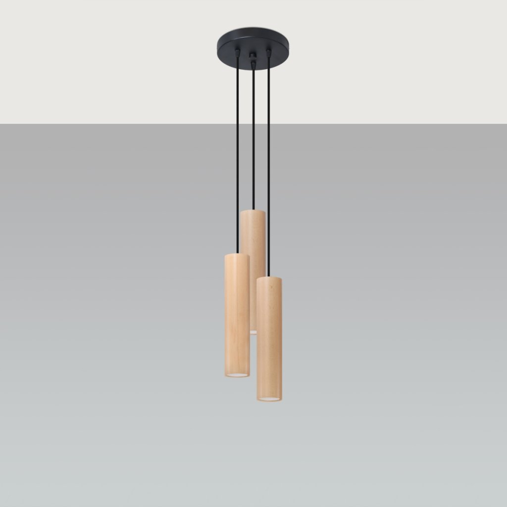 Závěsné svítidlo Lino 3p, 3x dřevěné stínítko