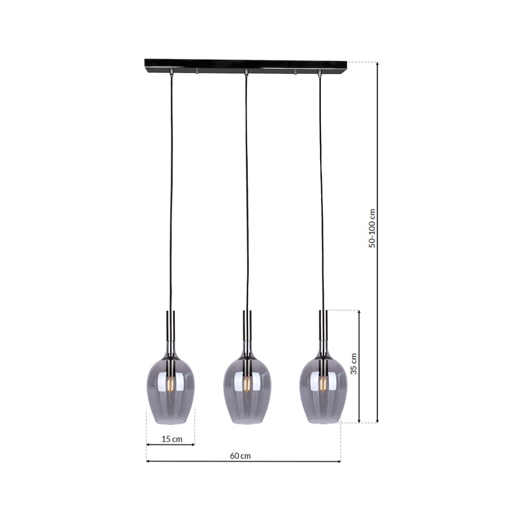 Závěsné svítidlo Lugano, 3x grafitové skleněné stínítko, b