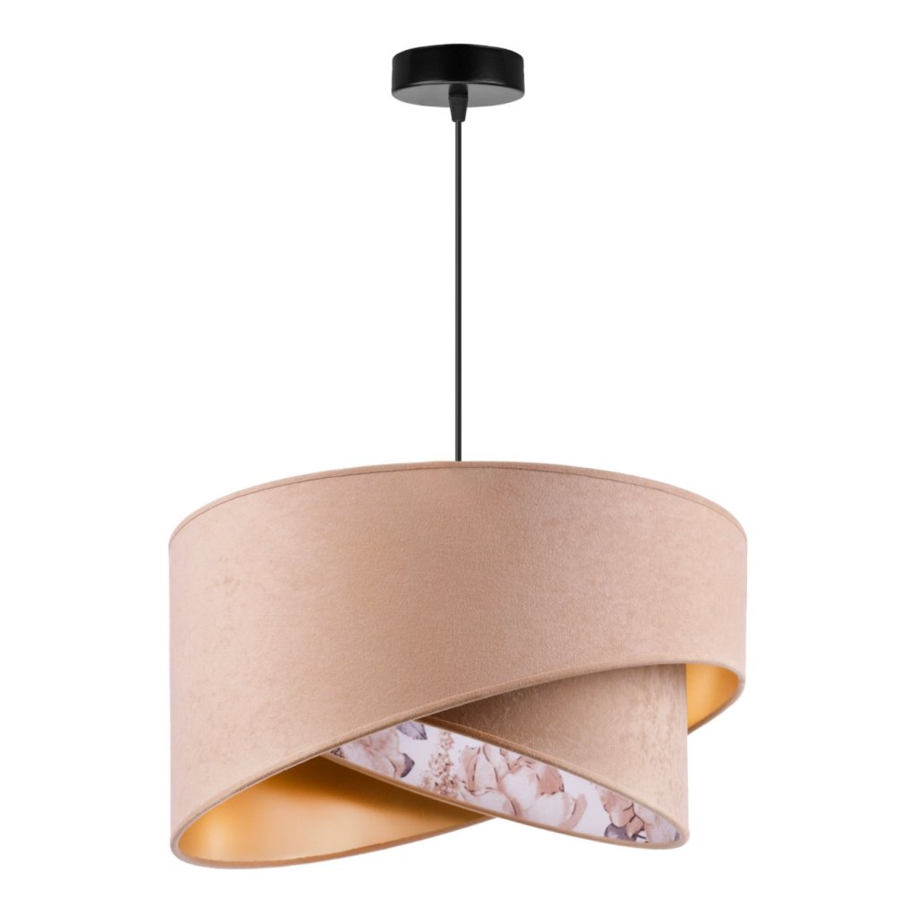 Závěsné svítidlo Mediolan, 1x béžové/zlaté/květinové textilní stínítko