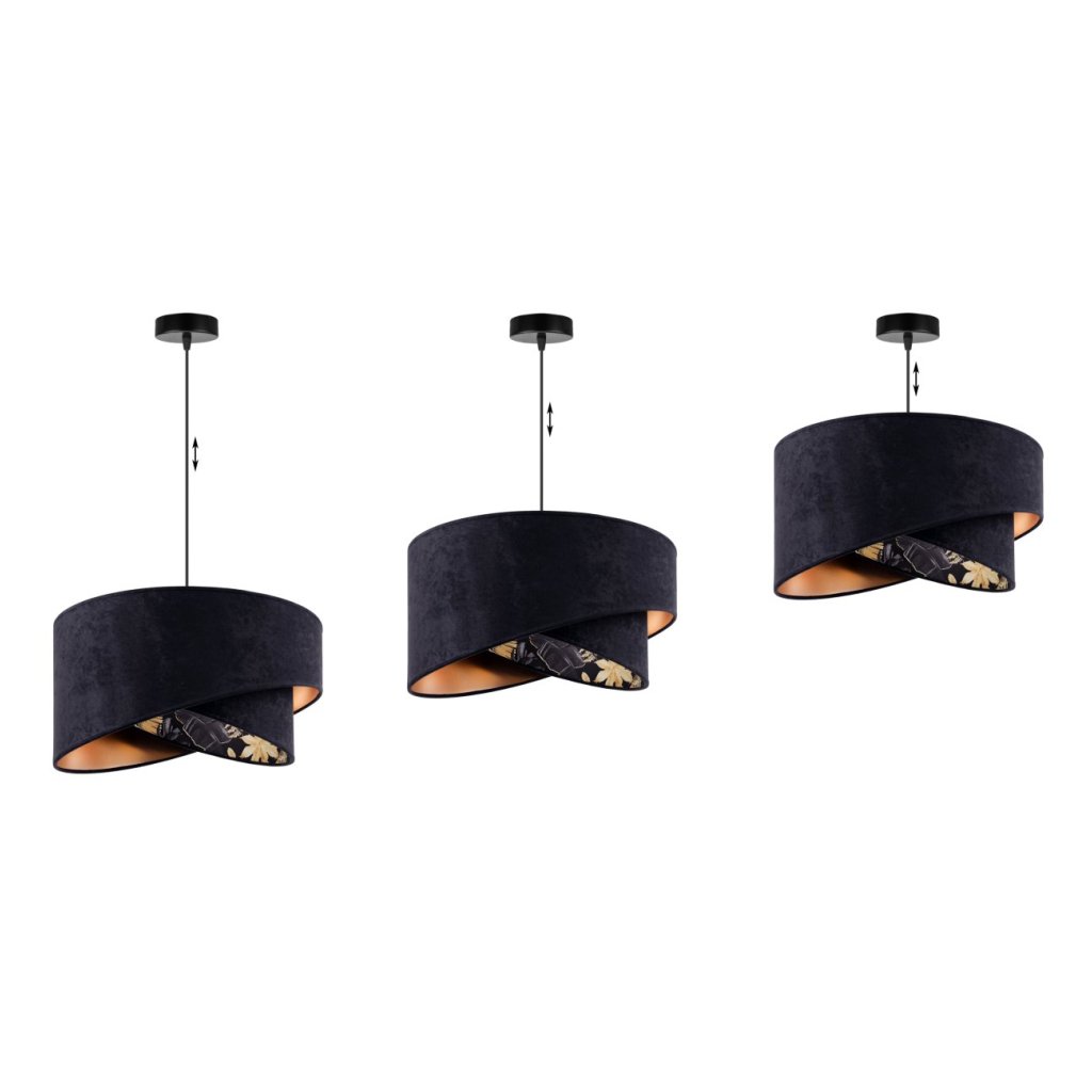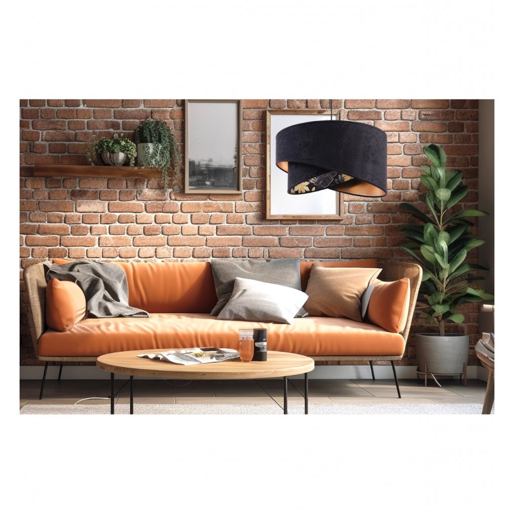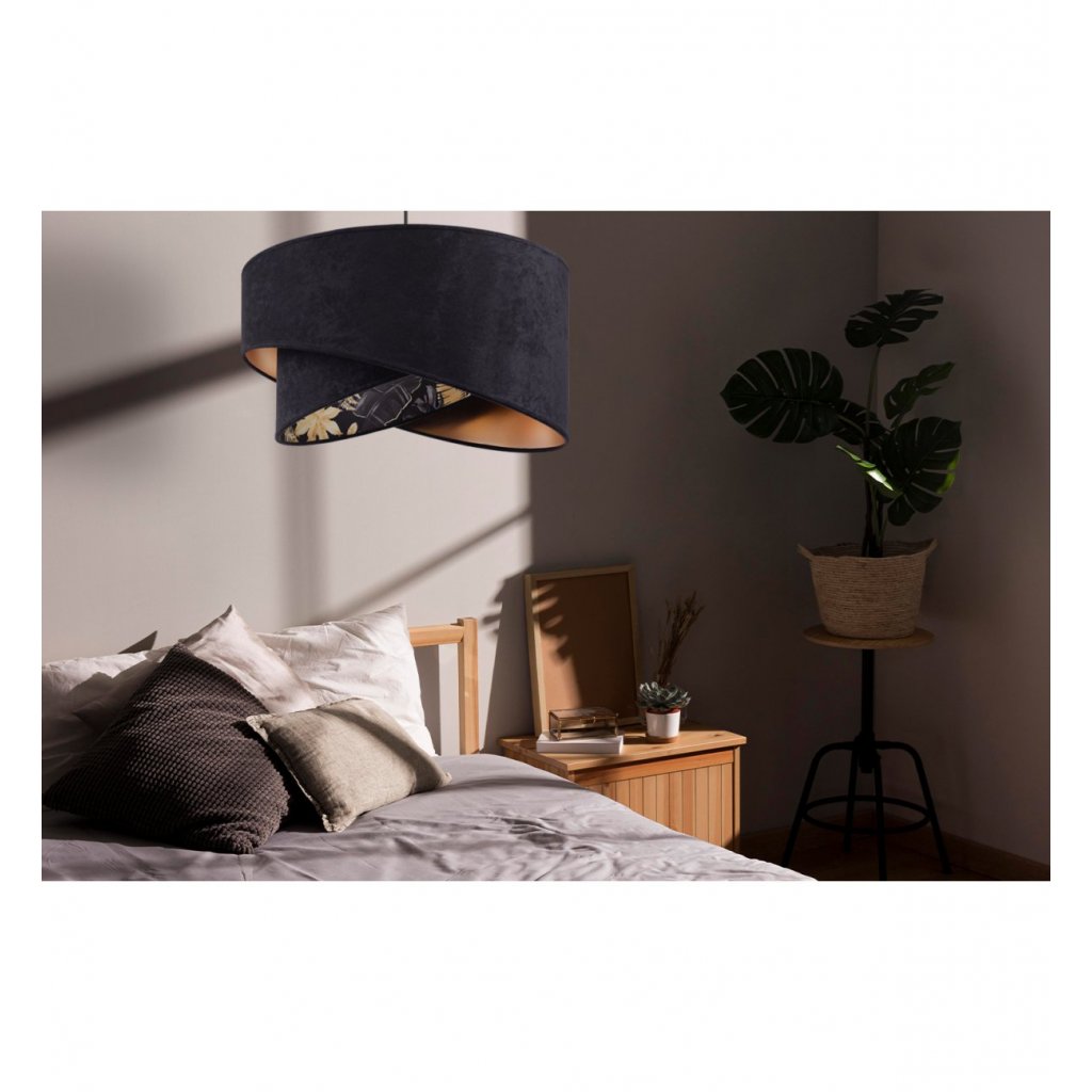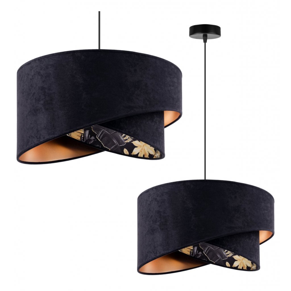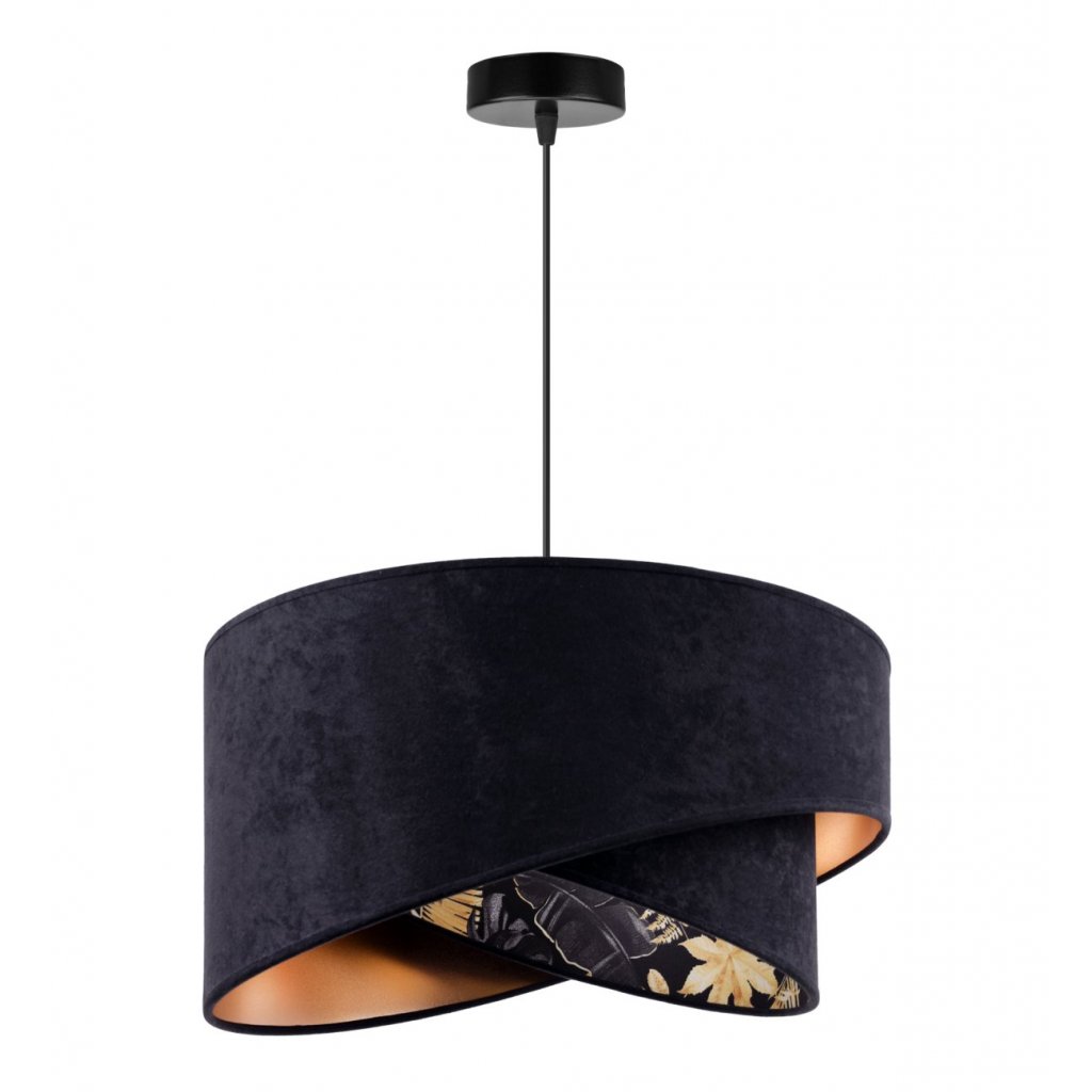 Závěsné svítidlo Mediolan, 1x černé/zlaté/květinové textilní stínítko