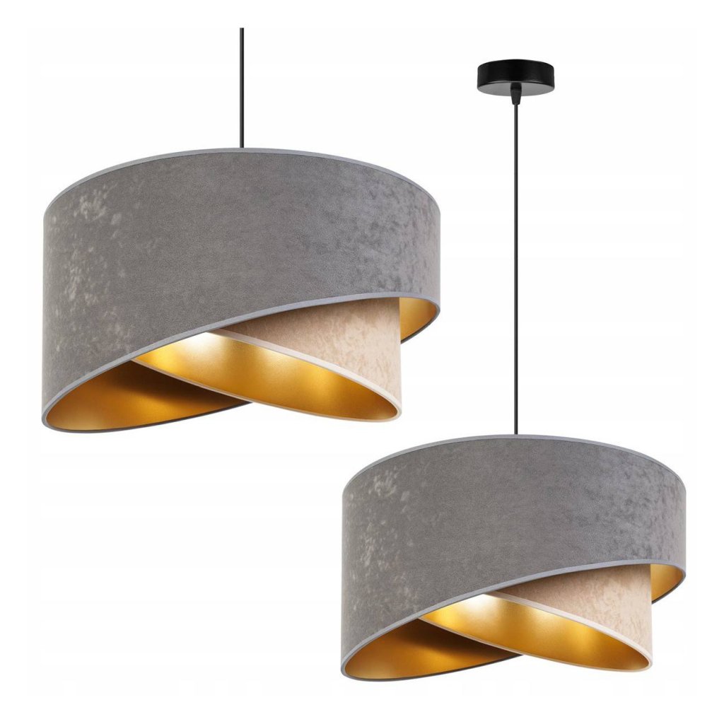 Závěsné svítidlo Mediolan, 1x šedé/béžové/zlaté textilní stínítko