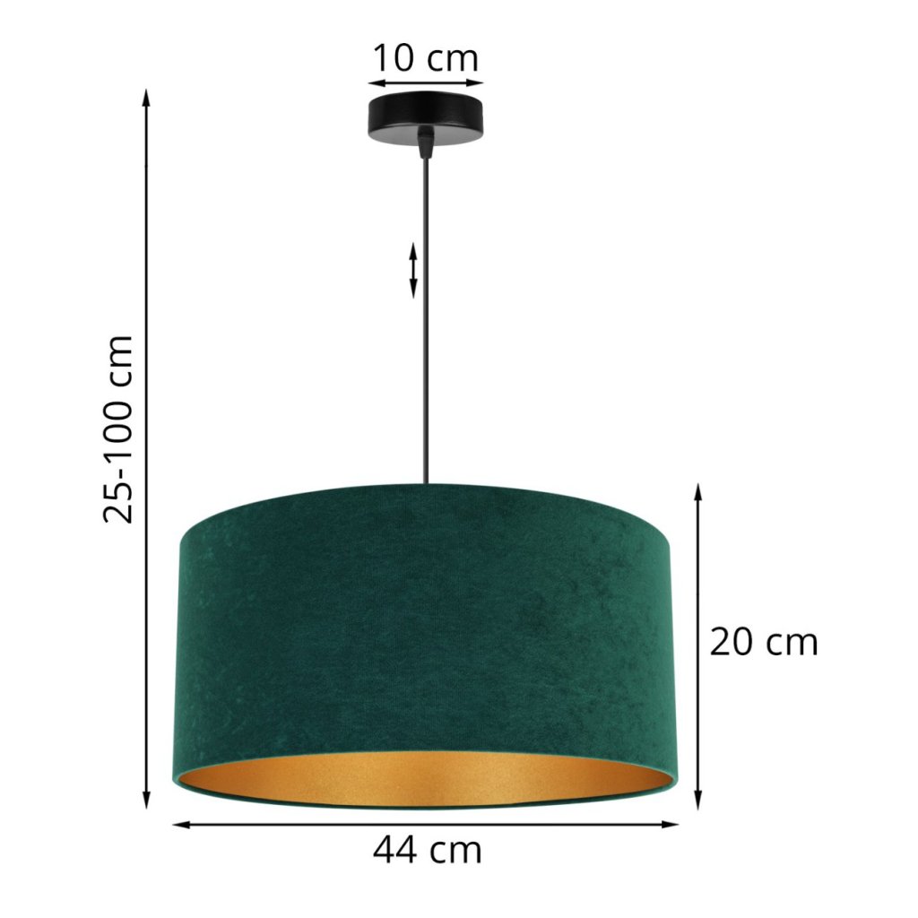 Závěsné svítidlo Mediolan, 1x tmavě zelené/zlaté textilní stínítko, (fi 44cm)