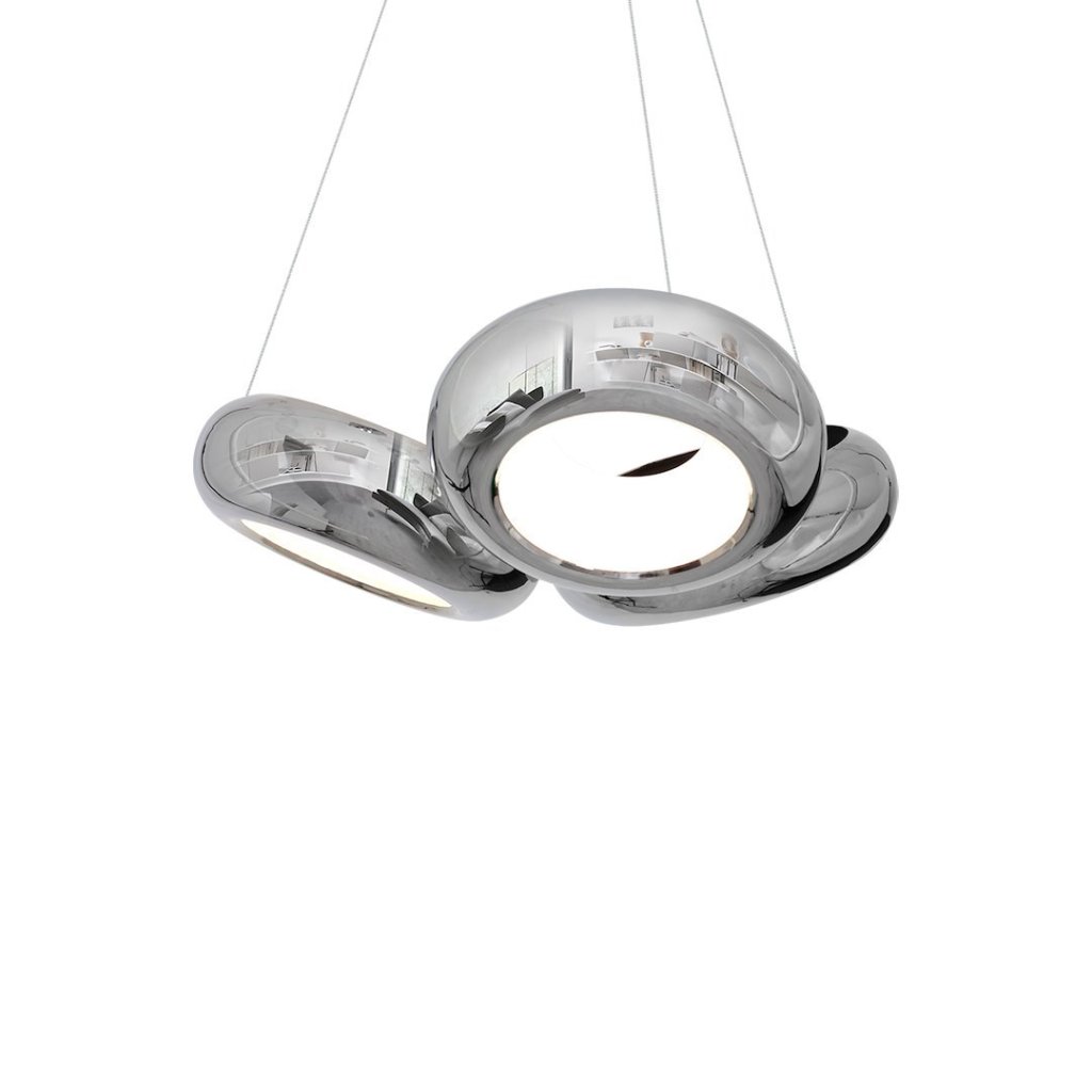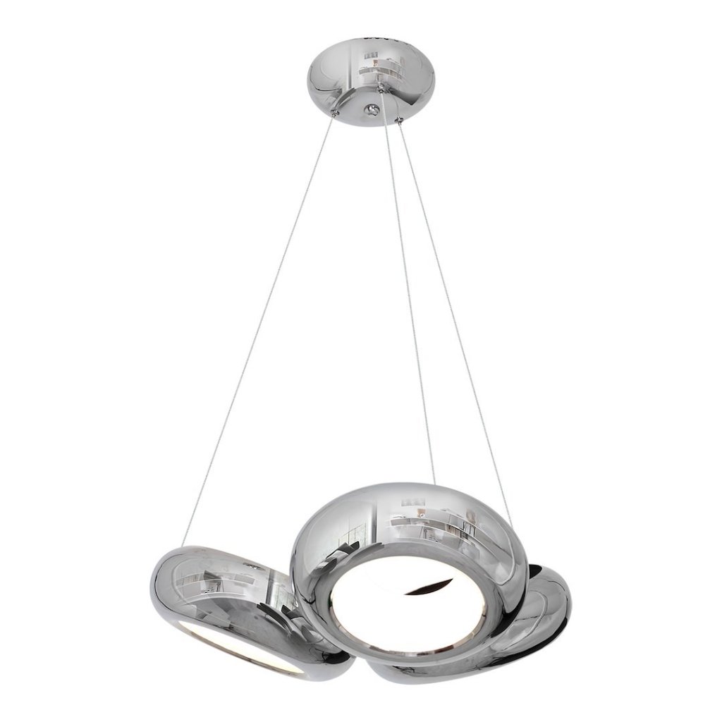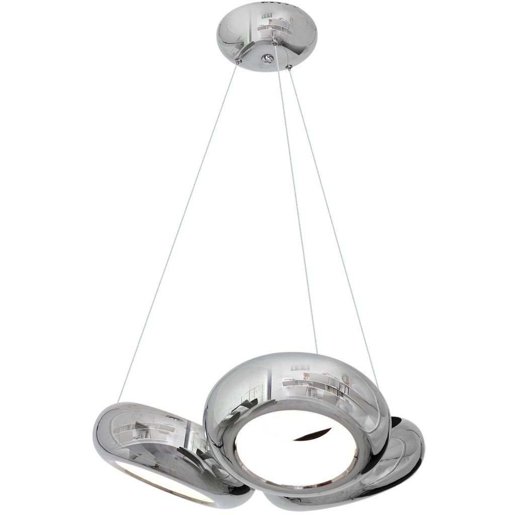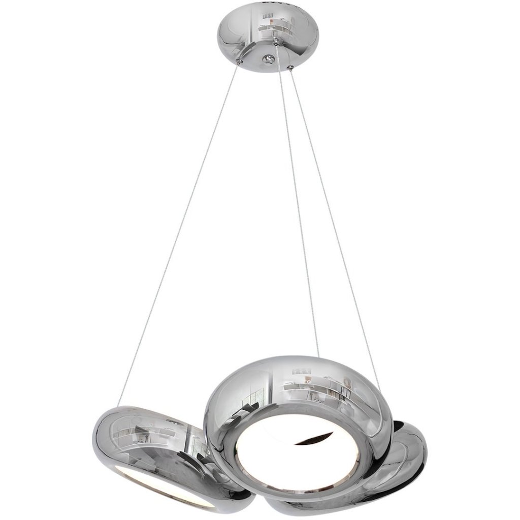 Závěsné svítidlo Mercurio je moderní a designové řešení pro osvětlení interiérů . Svítilnu tvoří trojice elegantních chromových kovových stínidel , vybavených výkonnými vyměnitelnými LED moduly o celkovém výkonu 36 W, což odpovídá výkonu 179 W klasických žárovek. Výhodou svítidla je možnost snadné regulace výšky jednotlivých stínítek v rozmezí od 50 do 100 cm, díky čemuž je svítidlo ideálně přizpůsobitelné různým typům místností.