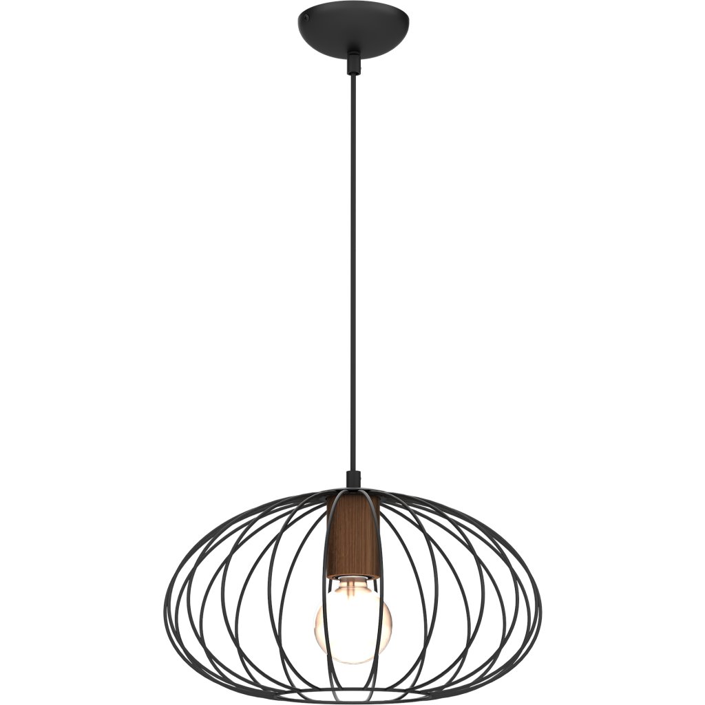 Závěsné svítidlo Meridiano, 1x černé drátěné stínítko, b/dřevo