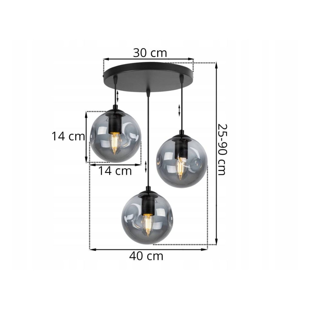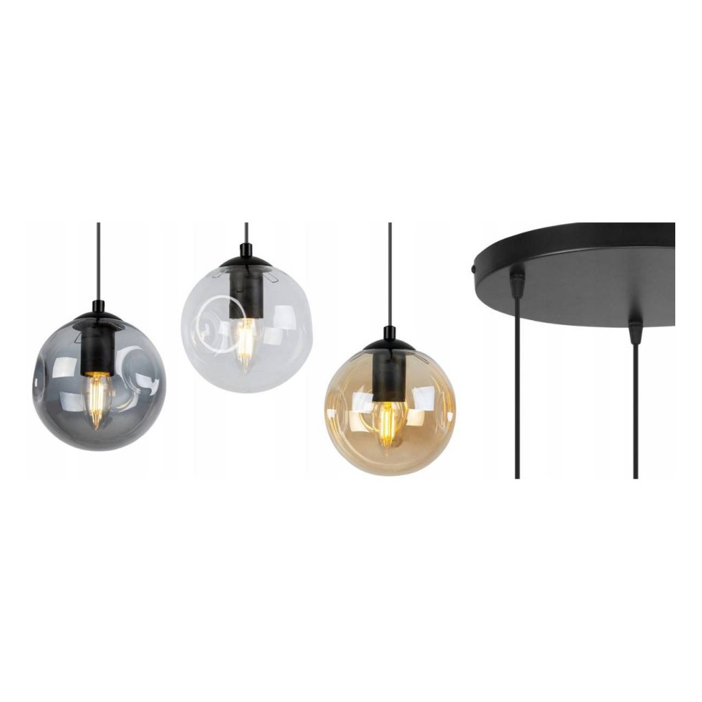 Závěsné svítidlo Monako, 3x grafitové skleněné stínítko, o