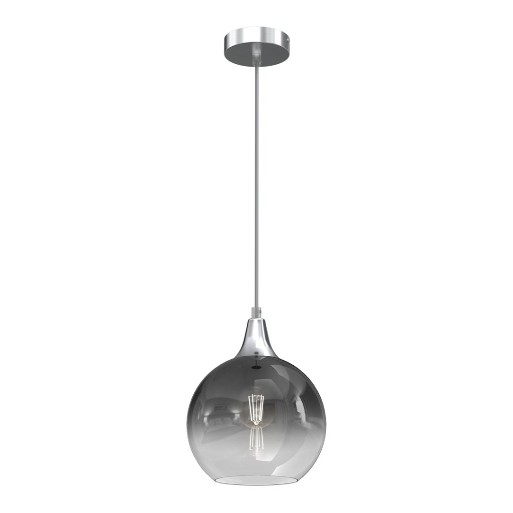 Stylová závěsná svítilna s grafitovým skleněným stínítkem o průměru 20 cm je ideální jako dekorativní osvětlení nad jídelní stůl, kuchyňský ostrov nebo do obývací zóny . Stínítko je vyrobeno ze skla se stříbrnošedým metalickým nástřikem , který plynule přechází do kouřeného a průhledného zakončení. Tento jemný gradientový efekt vytváří příjemné a rovnoměrné rozptýlení světla.