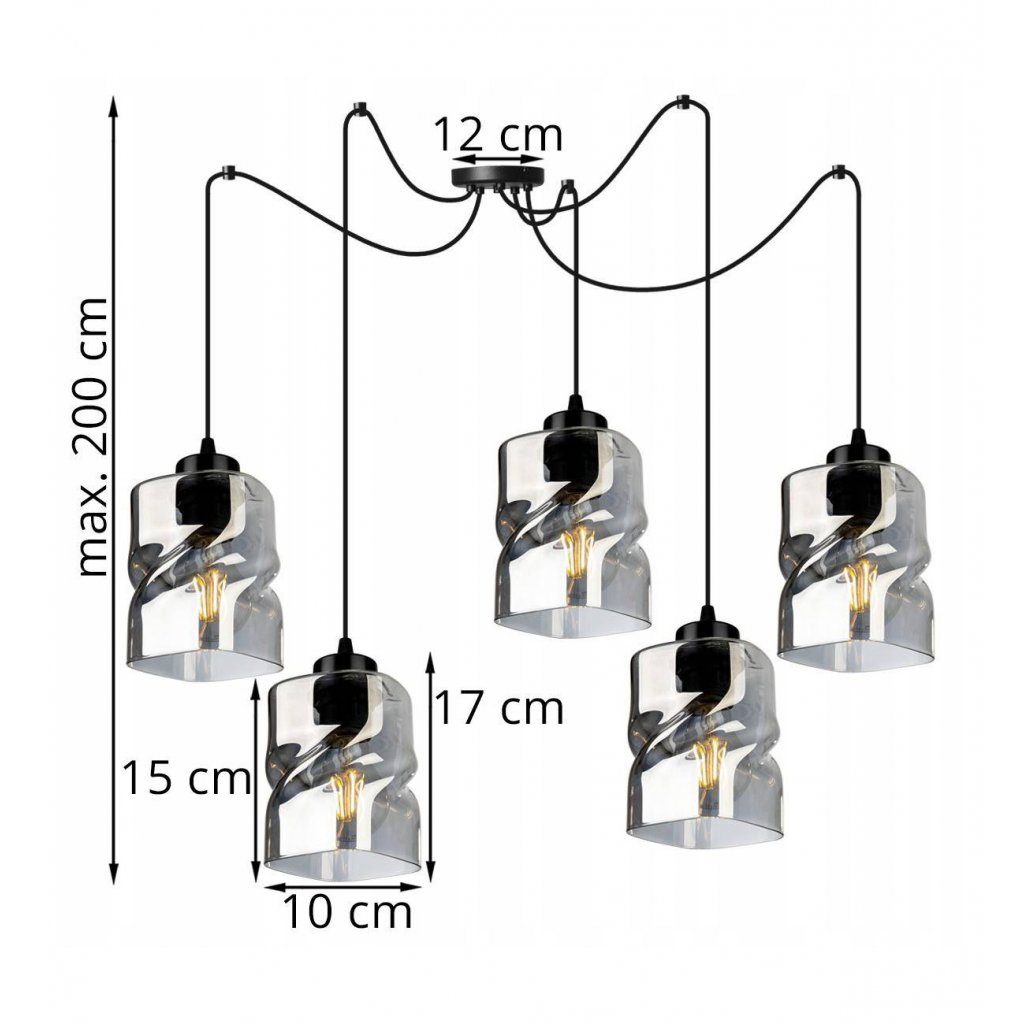 Závěsné svítidlo Niki Spider, 5x skleněné stínítko (mix 3 barev)