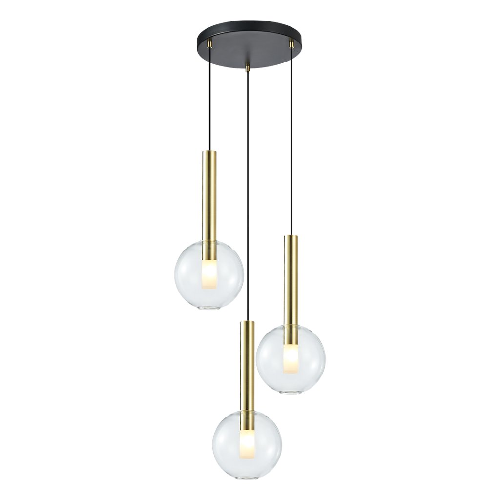 Závěsné svítidlo Niko, 3x transparentní skleněné stínítko, g/b, o