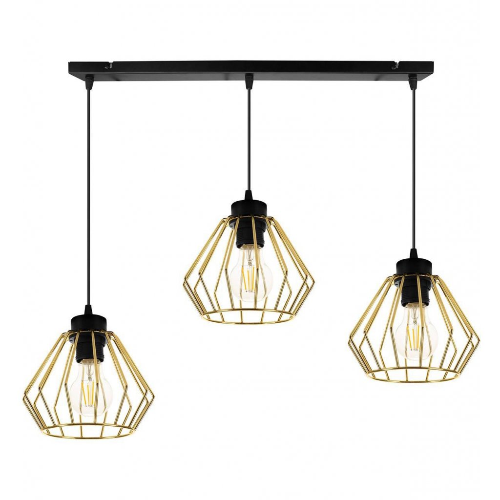 Závěsné svítidlo Nuvola 1, 3x zlaté drátěné stínidlo