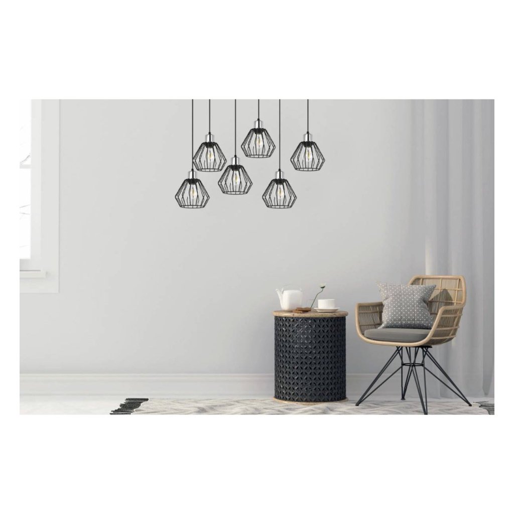 Závěsné svítidlo Nuvola 4, 6x černé drátěné stínítko,