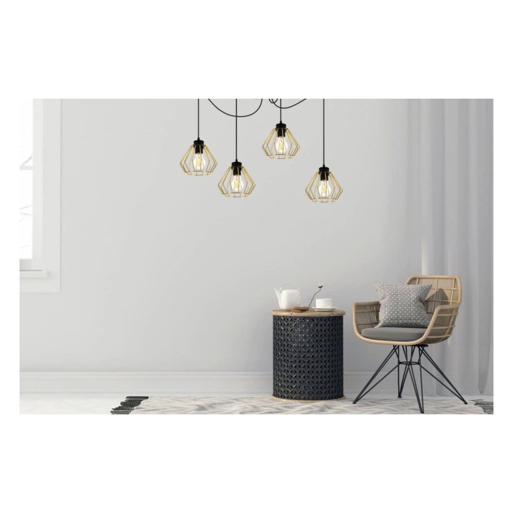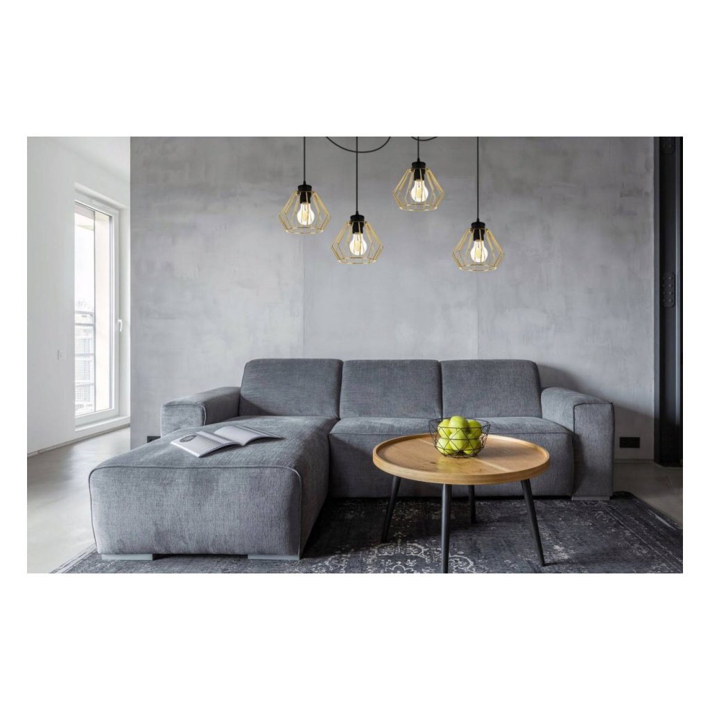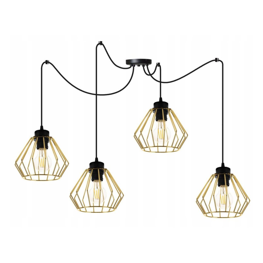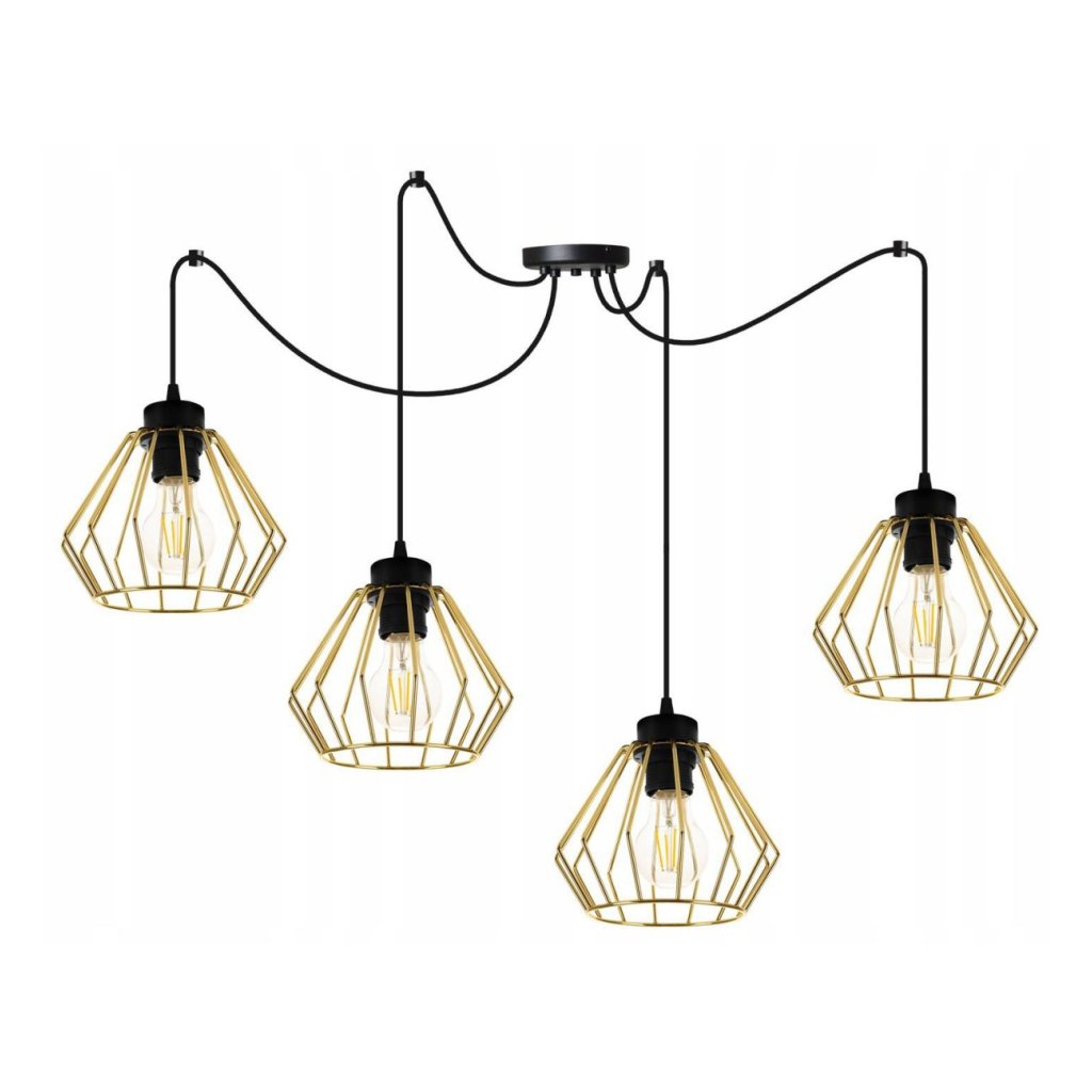 Závěsné svítidlo Nuvola Spider 1, 4x zlaté drátěné stínidlo