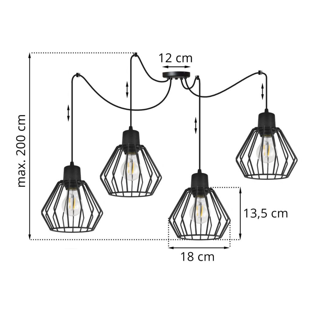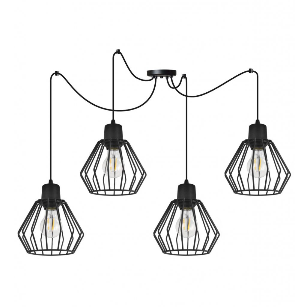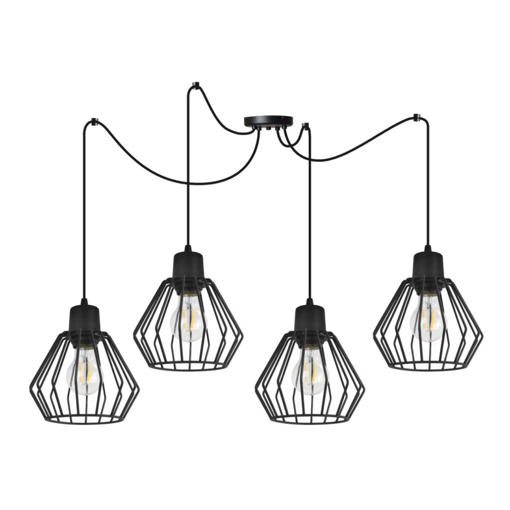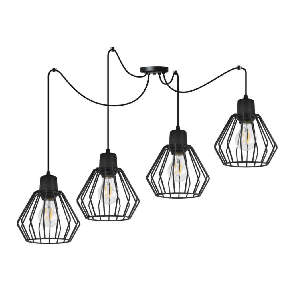 Závěsné svítidlo Nuvola Spider 2, 4x černé drátěné stínítko