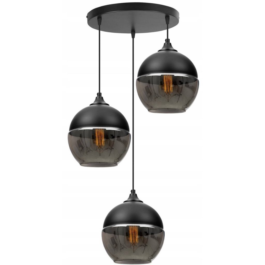 Závěsné svítidlo Oslo, 3x černé/grafitové skleněné stínítko, o