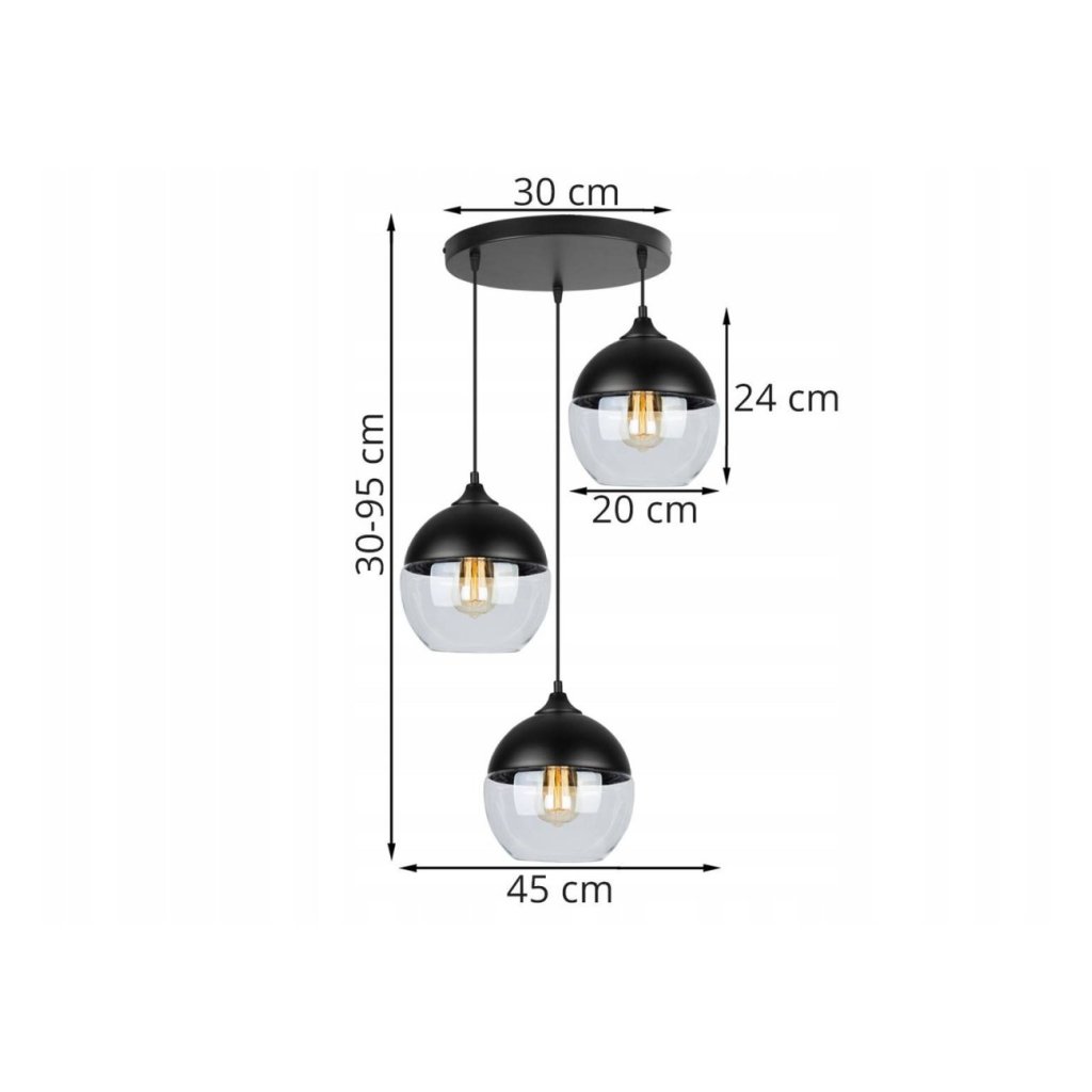 Závěsné svítidlo Oslo, 3x černé/transparentní skleněné stínítko,