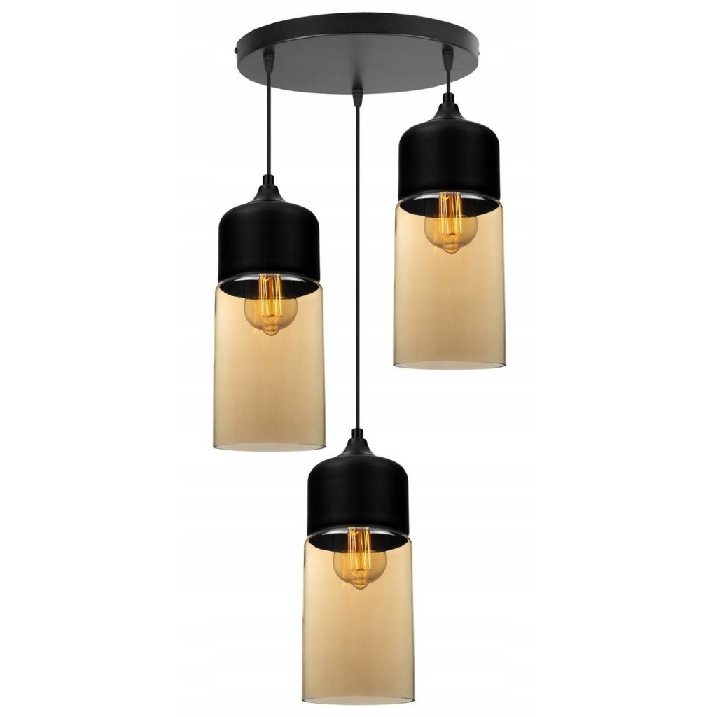 Závěsné svítidlo Oslo 2, 3x černé/medové skleněné stínítko, o