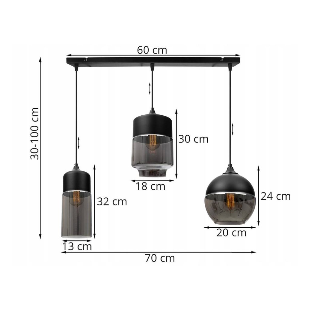 Závěsné svítidlo Oslo 4, 3x černé/grafitové skleněné stínítko