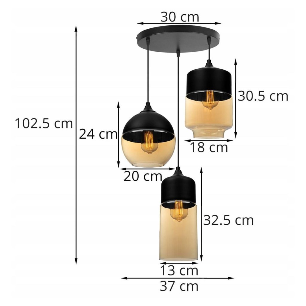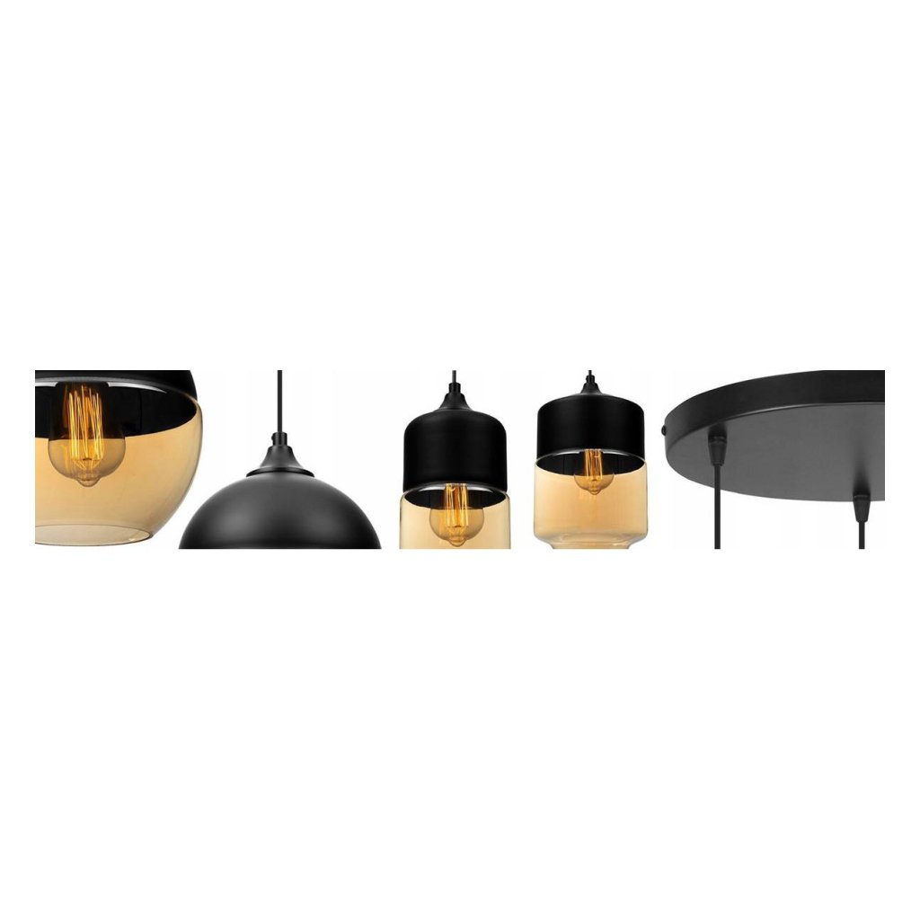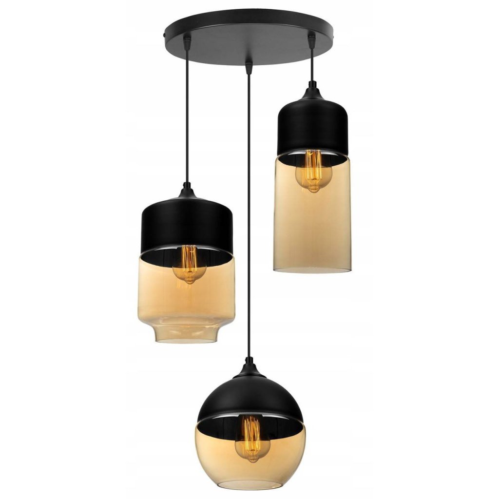 Závěsné svítidlo Oslo 4, 3x černé/medové skleněné stínítko, o