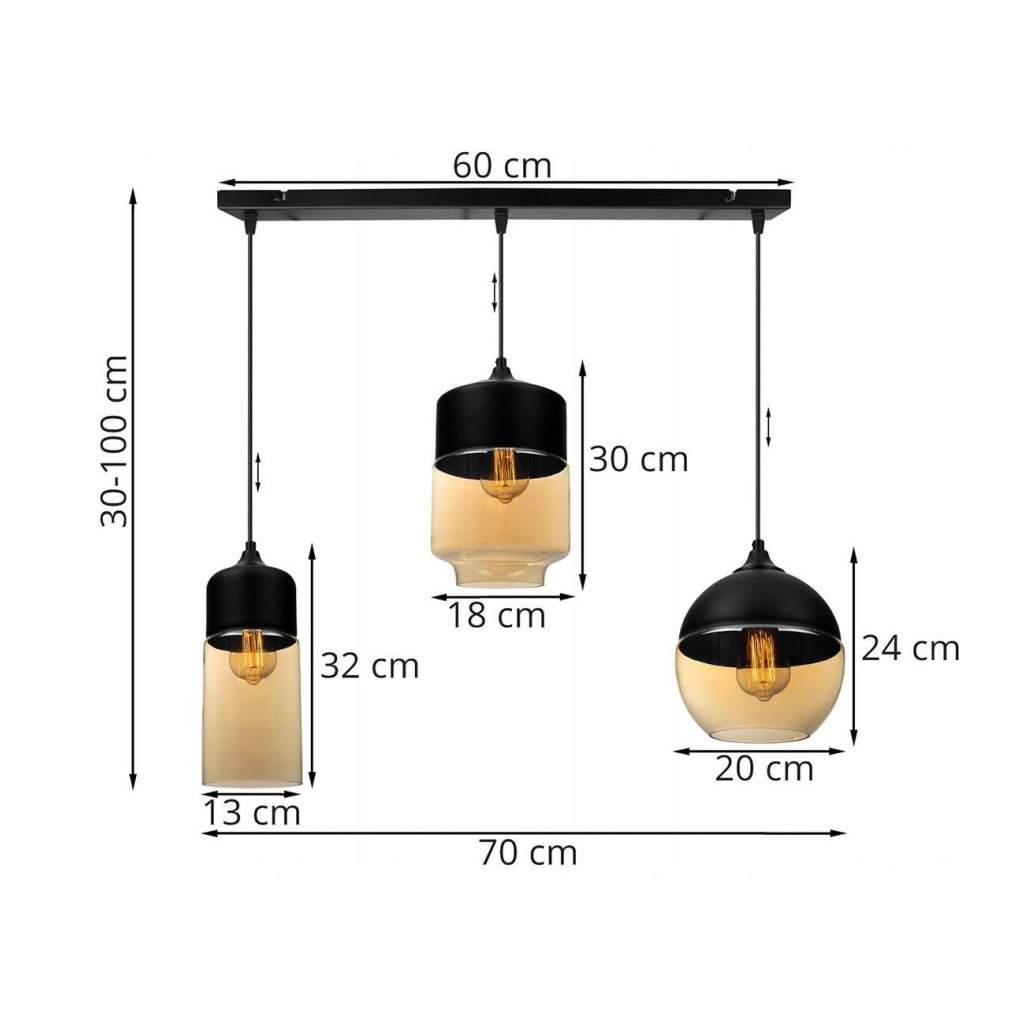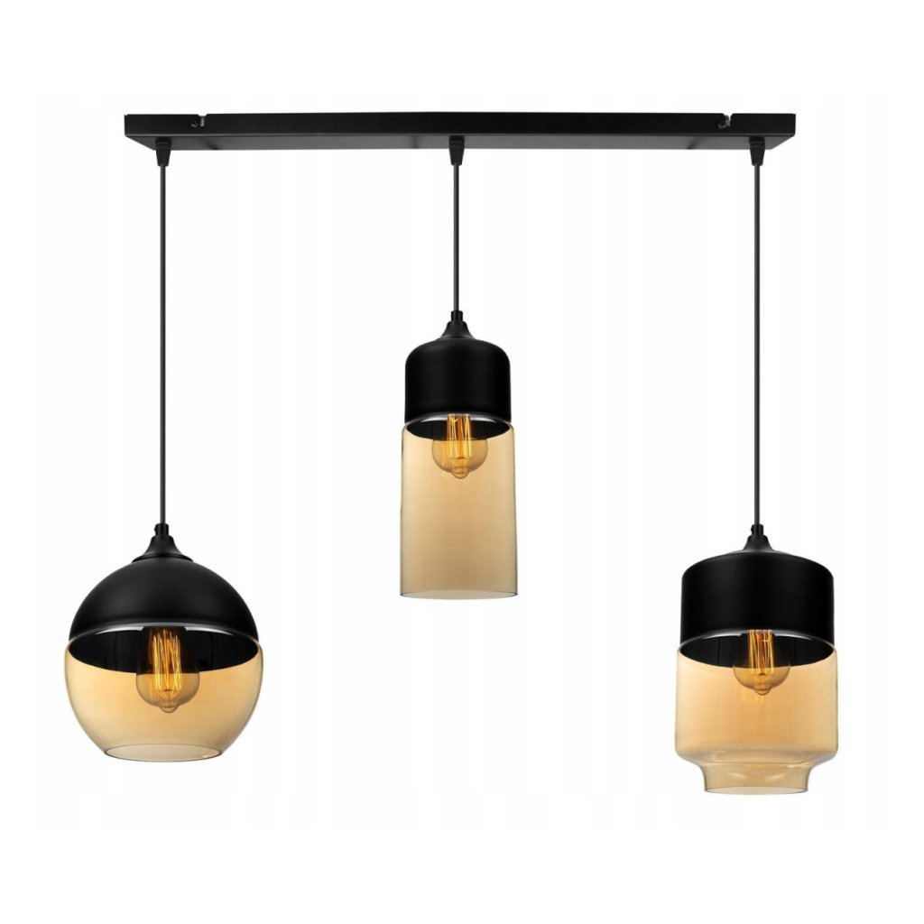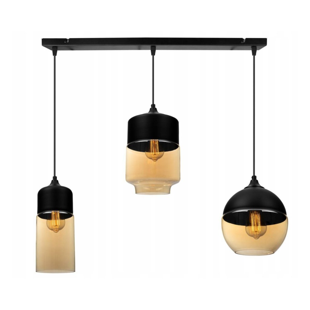 Závěsné svítidlo Oslo 4, 3x černé/medové skleněné stínítko