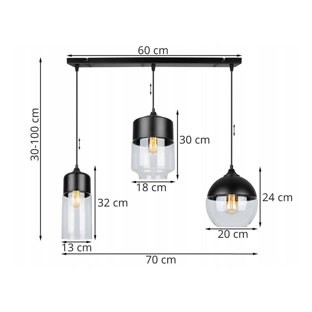 Závěsné svítidlo Oslo 4, 3x černé/transparentní skleněné stínítko