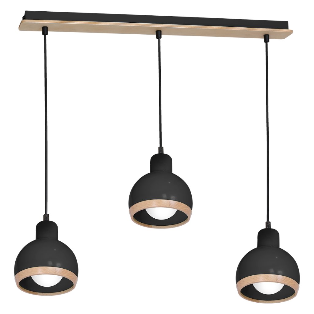Kulovitý tvar stínítek působí moderně a zároveň nadčasově. Díky svému designu je svítidlo ideální do kuchyně, jídelny nebo obývacího pokoje , kde vytváří harmonický kontrast mezi černou barvou kovu a přirozeným odstínem dřeva. Perfektně zapadne do moderních, skandinávských i minimalistických interiérů .