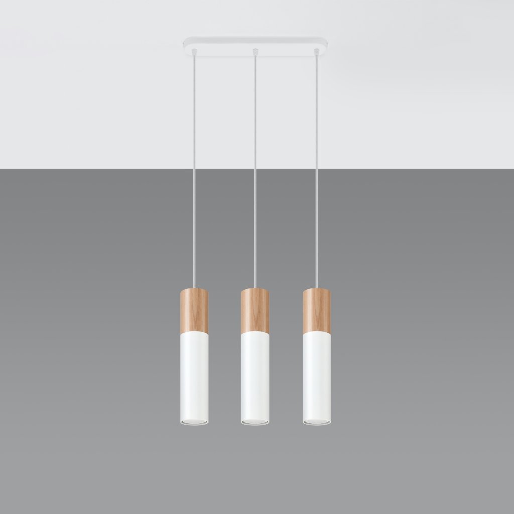 Závěsné svítidlo Pablo, 3x dřevěné/bílé kovové stínítko