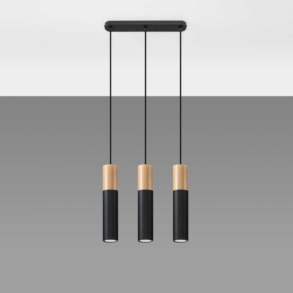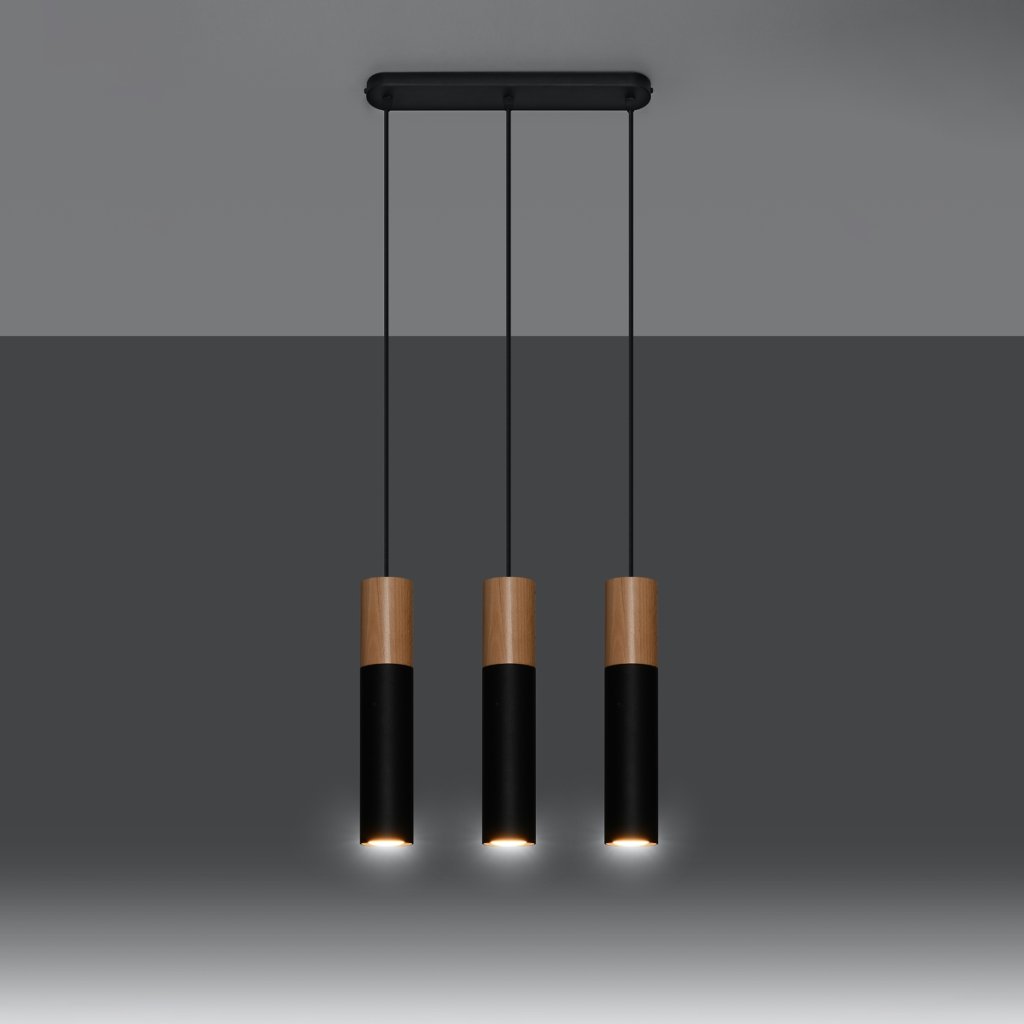 Závěsné svítidlo Pablo, 3x dřevěné/černé kovové stínítko