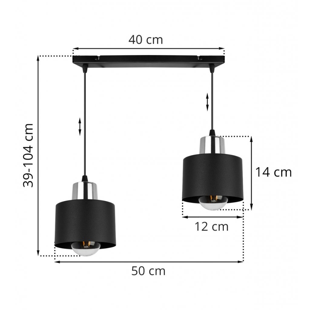 Závěsné svítidlo Panta, 2x černé kovové stínítko, ch