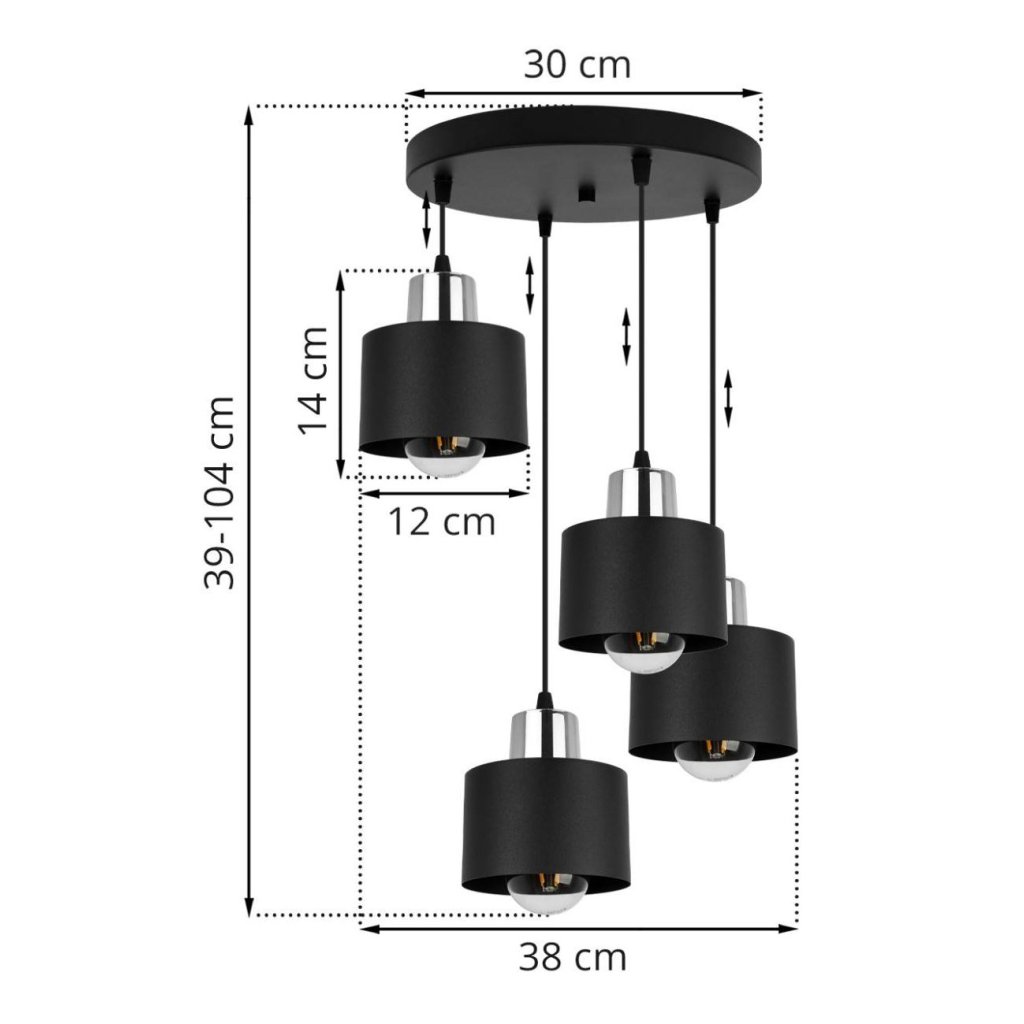 Závěsné svítidlo Panta, 4x černé kovové stínítko, o, ch