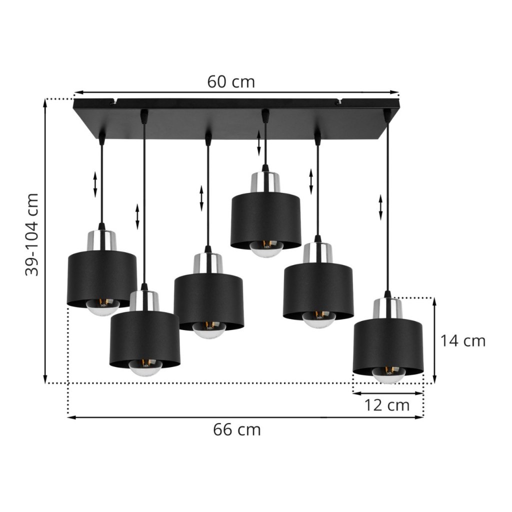 Závěsné svítidlo Panta, 6x černé kovové stínítko, ch