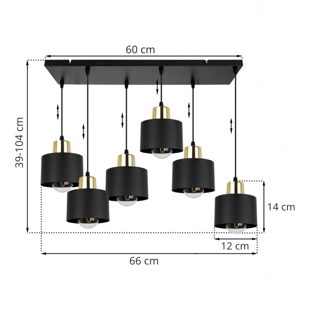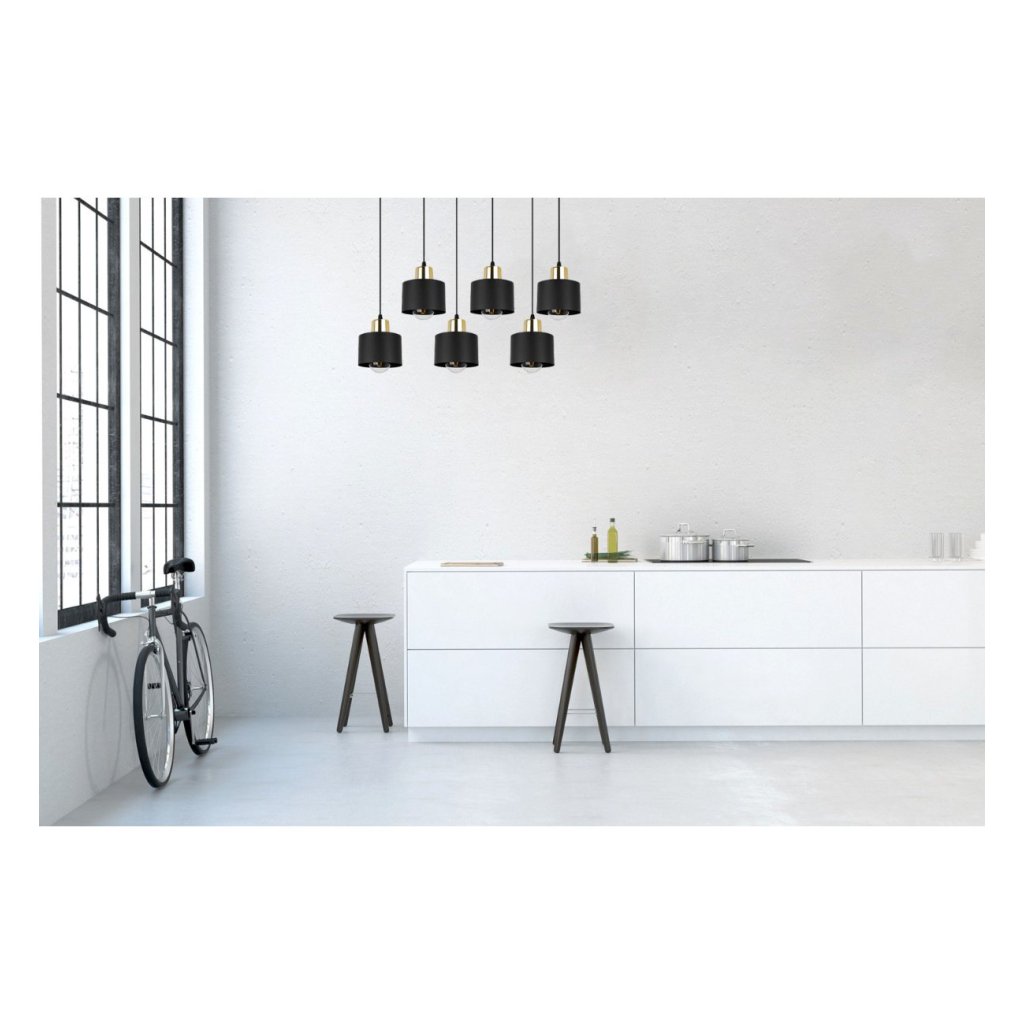 Závěsné svítidlo Panta, 6x černé kovové stínítko, g