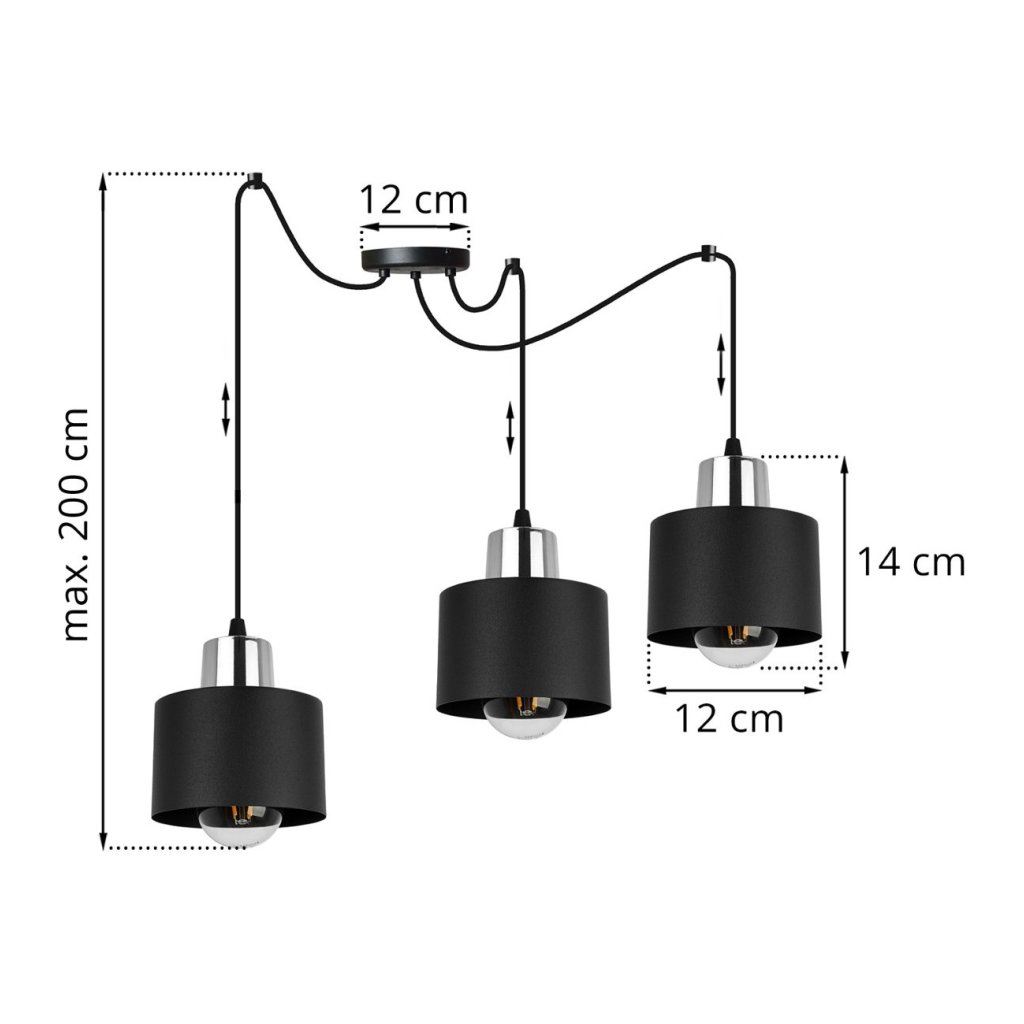 Závěsné svítidlo Panta Spider, 3x černé kovové stínítko, ch