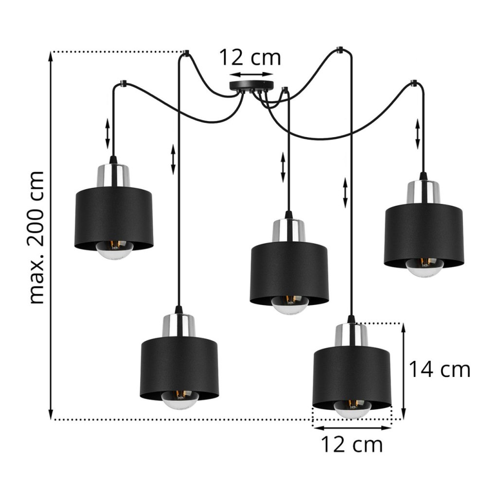 Závěsné svítidlo Panta Spider, 5x černé kovové stínítko, ch