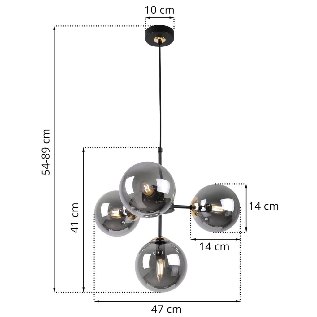 Závěsné svítidlo Paris, 4x grafitové skleněné stínítko, g