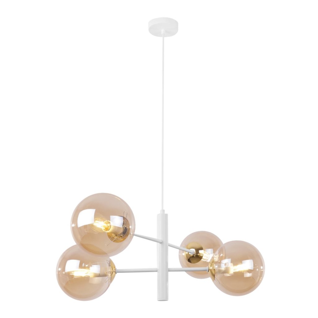 Závěsné svítidlo Paris, 4x medové skleněné stínítko, W/G