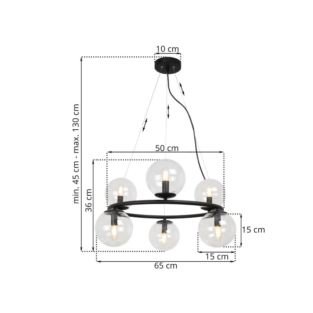Závěsné svítidlo Paris, 6x čiré skleněné stínítko, B, O