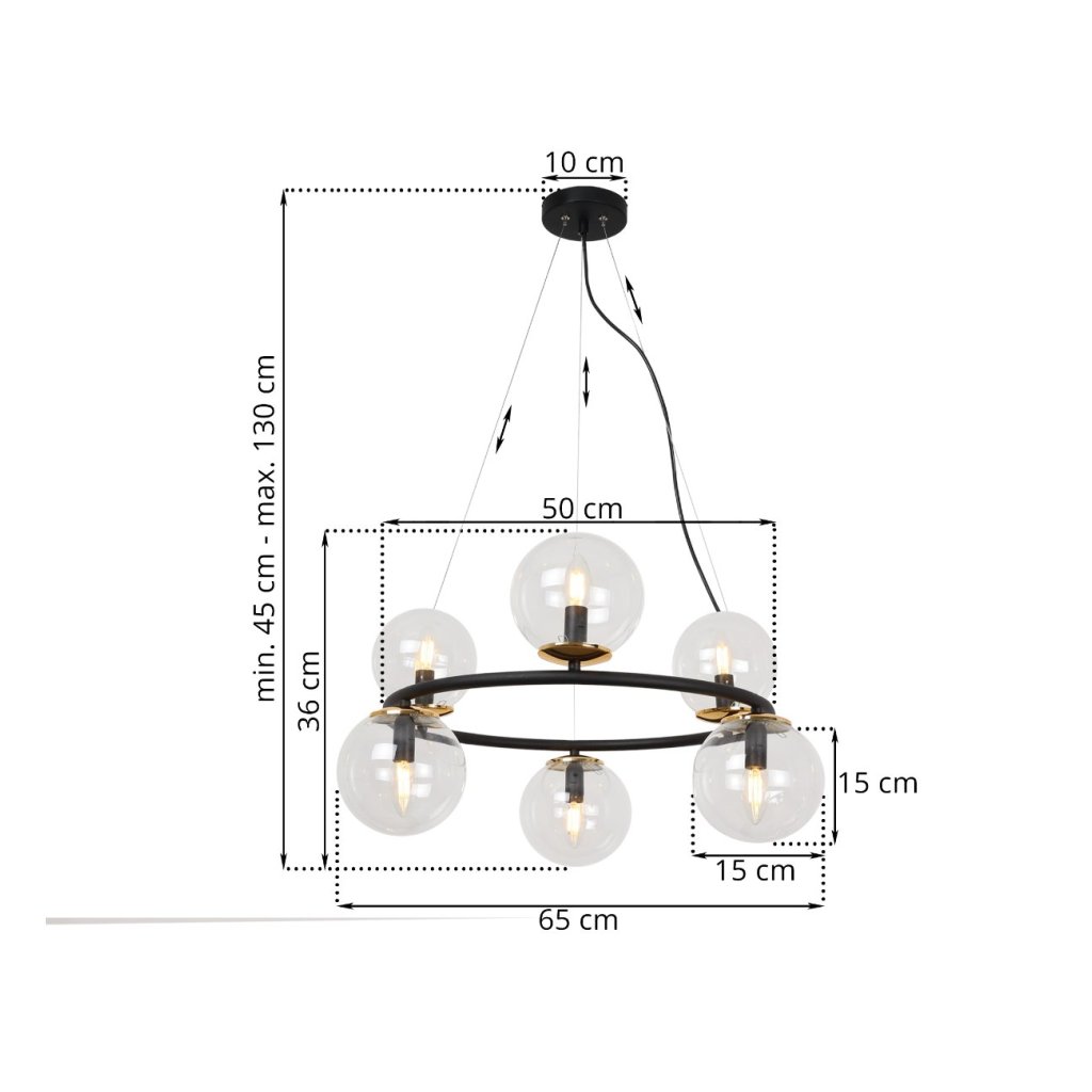 Závěsné svítidlo Paris, 6x čiré skleněné stínítko, B/G, O